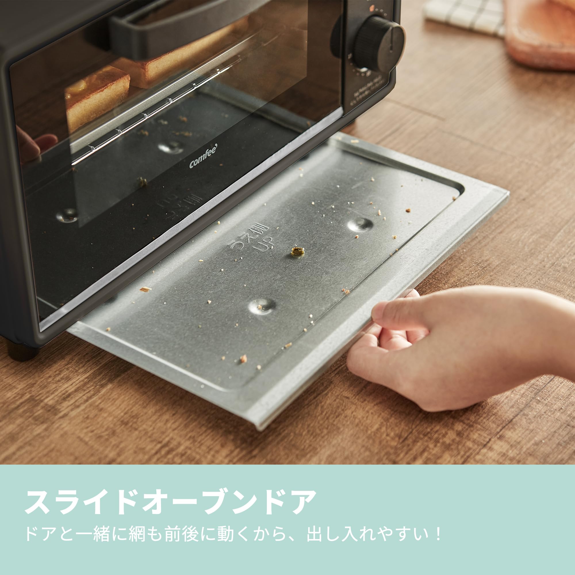 COMFEE' オーブン・トースター: ・外はサクサク、中はもっちり、家でもおいしい焼き料理を仕上げられます! ・直感的なつまみ操作、お年寄りも簡単に操作できます! ・受け皿と角皿、または焼き網も全部取り出せて、お手入れ便利! ・小型でコンパクト、一人暮らしに最適! 【商品仕様】 ◇コンパクトなサイズ:19.8D x 36.4W x 20.7H cm,約2.7kg ◇容量:8L、トースト2枚焼き ◇電源:AC100V ◇最大出力:1,000W ◇タイマー:最大15分 ◇機能:ピザ・トースト・切り餅・グラタン・バターロールなどの焼き料理、フライ温めなど ◇電源コード長さ:1.1m ◇付属品:パンくずトレイ・焼き網・日本語取扱説明書 ※ 製品期間:一年間