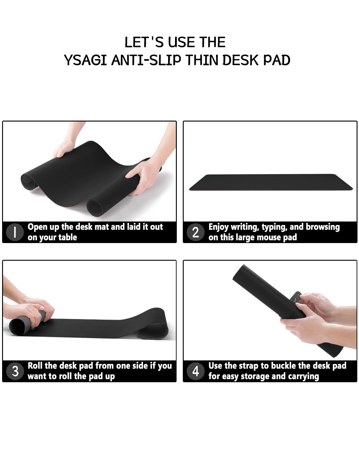 YSAGi デスクマット マウス対応 レザー デスクマット 大型マウスパッド 裏面はスエード 滑り止め 厚さ2mm 防水 防油 断熱 お手入れ簡単 オフィス 自宅用 装飾用 デスクパッド(ブラック,80*40cm)