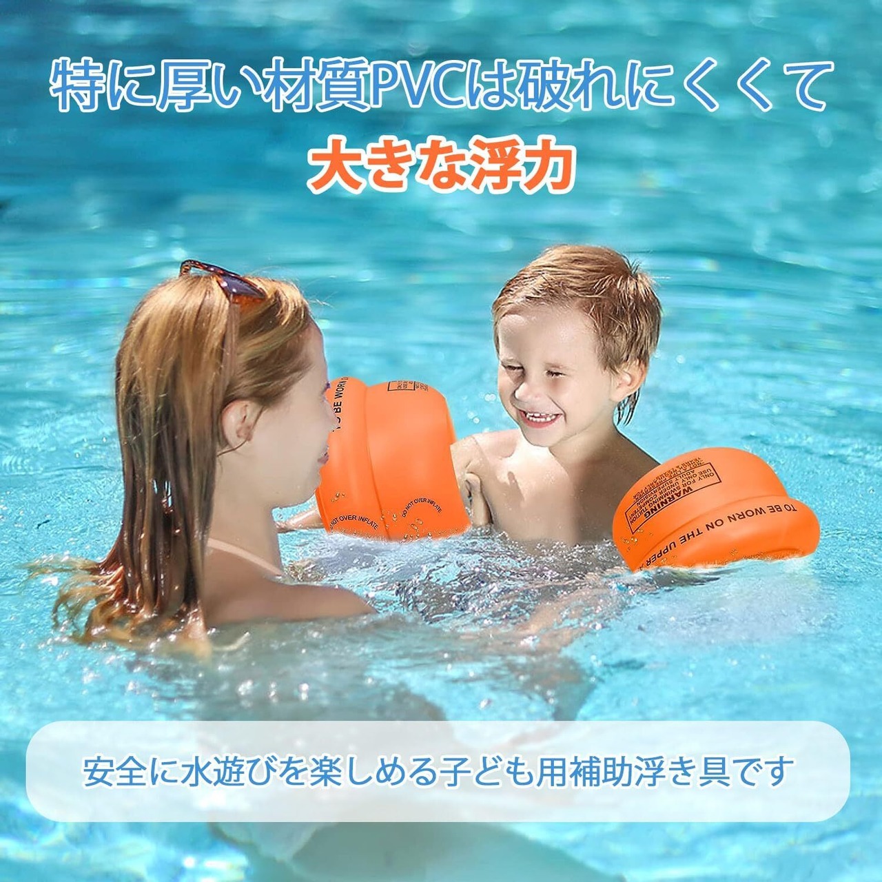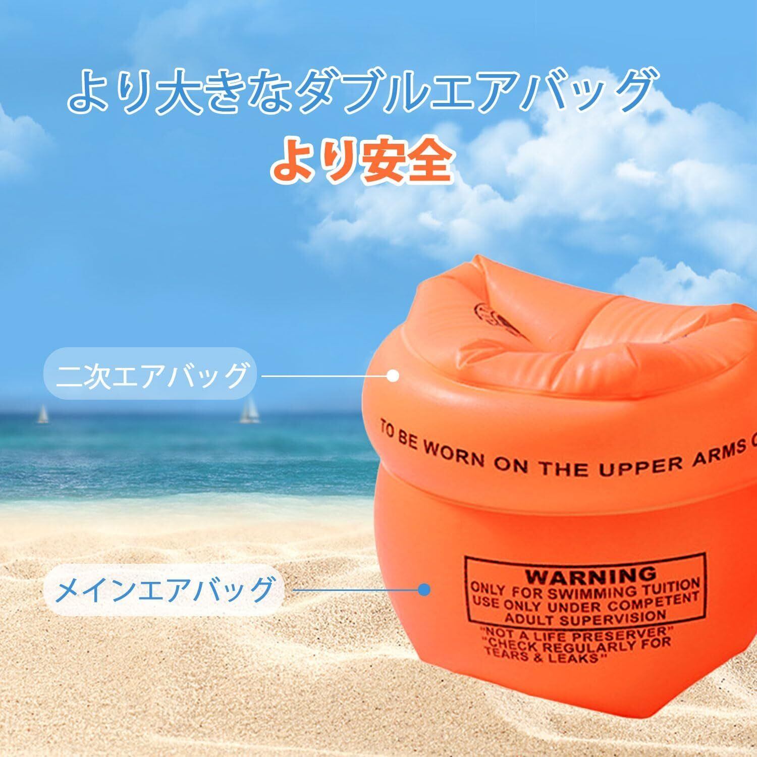 【腕につける浮き輪アームリング】水泳の初心者向け、空気を入れるだけで簡単に使用できます。ダブルエアバッグでしっかり浮くので、水への怖くを避けるため、アームリングは子供に安全感を与え水中でぷかぷか浮いてながら練習ができます。