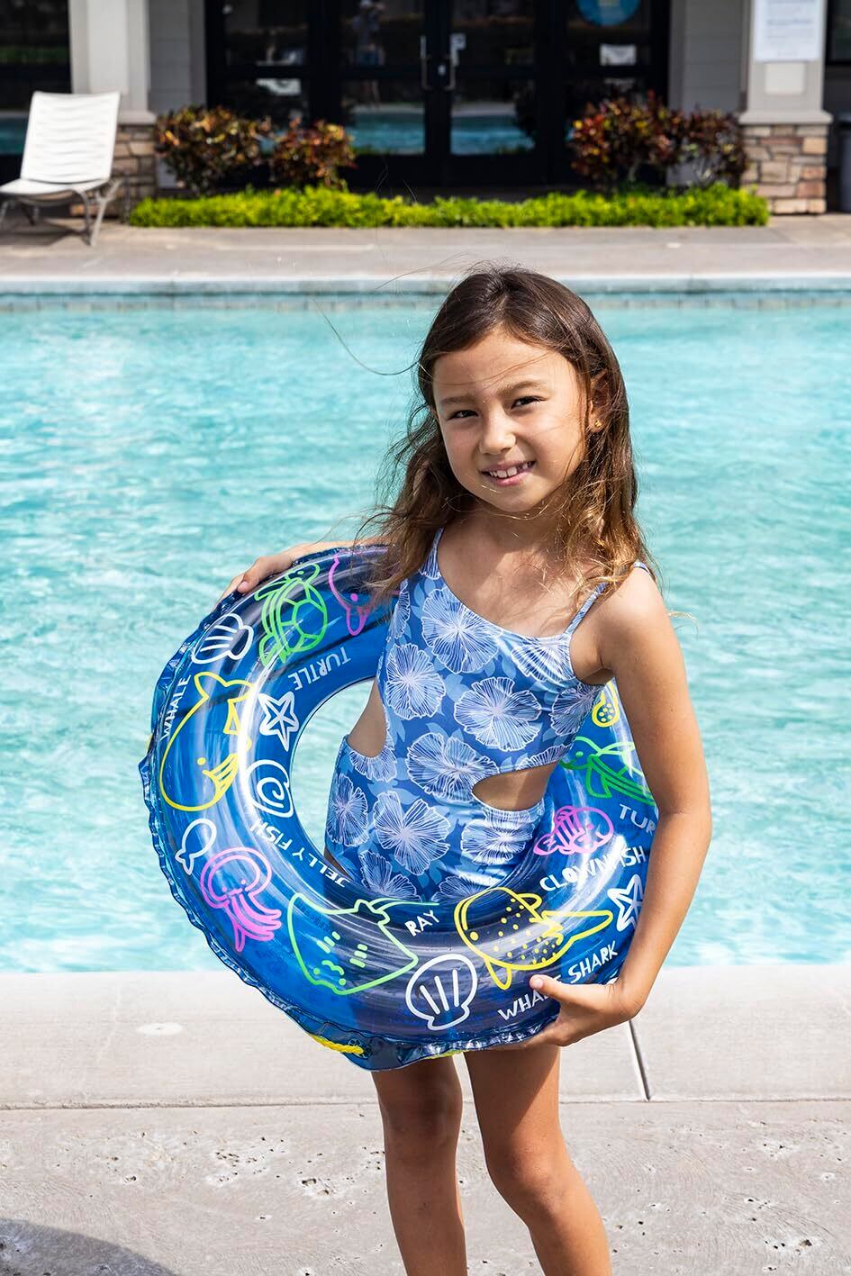 対象年齢3歳~6歳くらいのお子様に最適!。膨らんだ状態のウキワの内周は約80~85cmです。