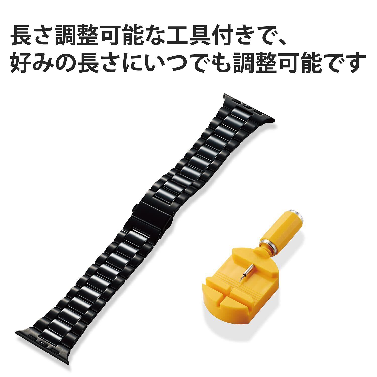 エレコム Apple Watch (アップルウォッチ) バンド 49mm 45mm 44mm 42mm [Apple Watch Ultra 8 7 SE2 SE 6 5 4 3 2 1 対応] ステンレス セラミック 3連タイプ 長さ調整可 調整工具付き ブラック AW-44BDCE3BK