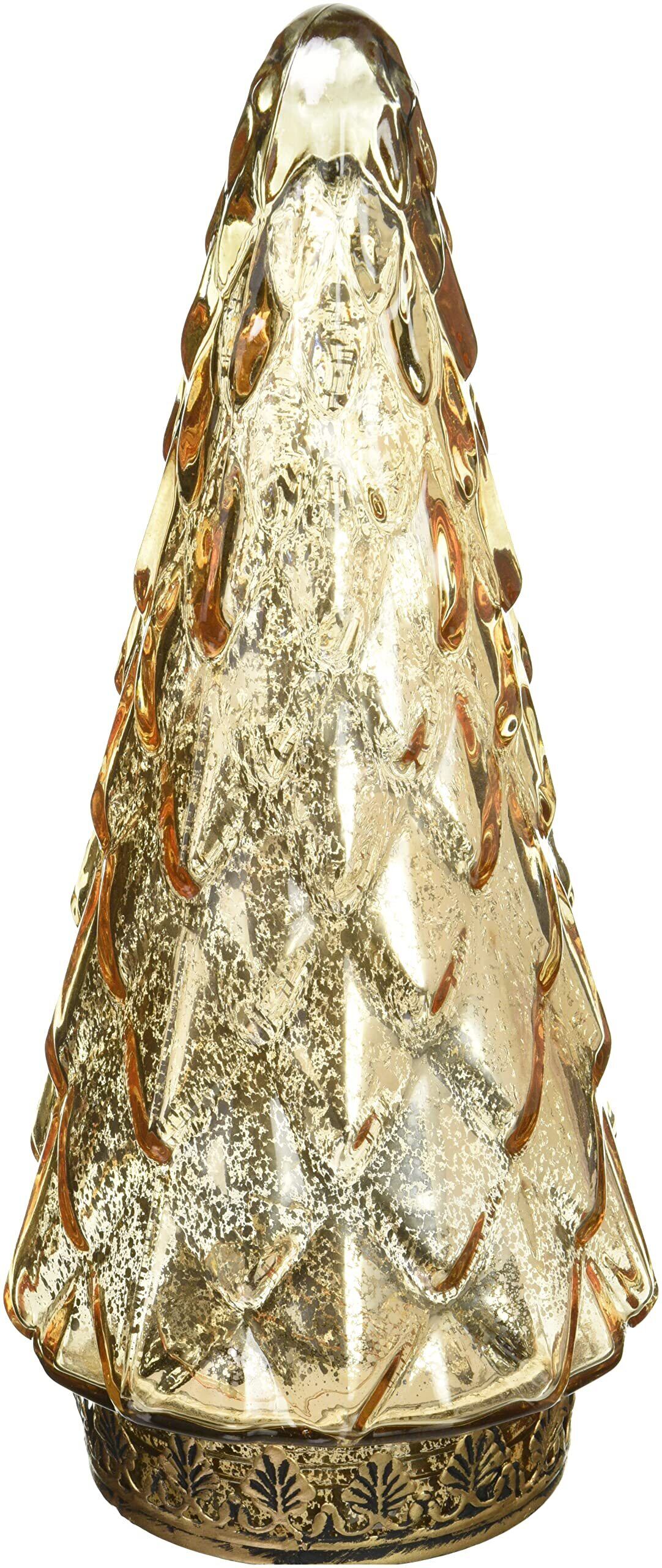 ケーアイジャパン クリスマスツリー ガラス製 飾り インテリア装飾 ビジュー LEDランタン ゴールド 直径10×高さ25cm 166238