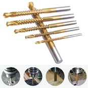 <p>仕様:六角軸、刃先シンニング加工。</p> <p>材料:高速度鋼 ツイストドリルビット。</p> <p>ドリル径サイズ: 3 mm 、 4 mm 、5 mm 、6 mm 、6.5 mm 、 8 mm。</p> <p>ツイストドリルビット</p> <p> チタンコーティング麻花ドリルビット HSSド リルビット 特殊形状 丸シャンク のこぎりドリル 軟金属 鉄工用 木工用 ドリルソーセット</p> <p>斜め刃のデザインで、刃の切れ味がとても良く、パンチング効率が高いです。</p> <p></p> <p>セット内容: 6本入り ツイストドリルビット</p>