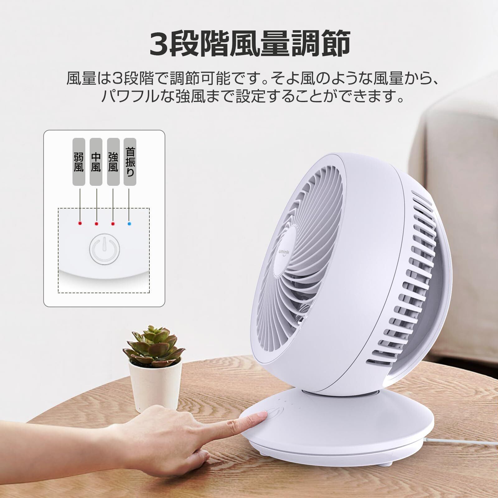 Umimileユミマイル サーキュレーター 首振り 静音 扇風機 壁掛け 羽根径17cm 小型 卓上扇風機 6畳 風量3段階調節 USB電源 ホワイト