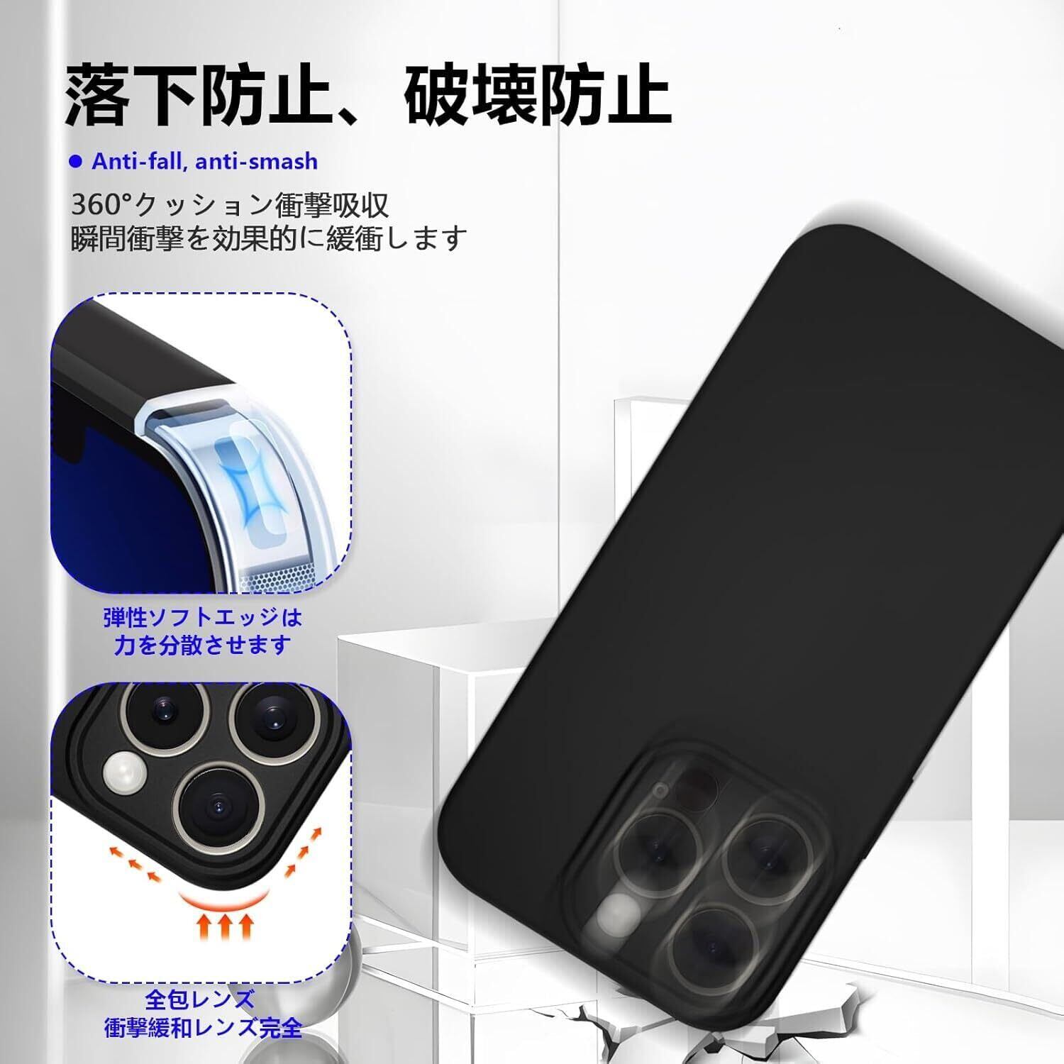 【耐衝撃】衝撃に強く、日常生活での消耗に耐えしっかり保護できるので、四角を強化することで、落下や衝撃による損傷を軽減します。本体の薄さを維持しつつ、シリコンケースの柔らかいマイクロファイバーの裏地が、カメラを傷や擦り傷から保護します。高耐衝撃構造で作られ、熟練の技術に裏付けられたクッション加工、落下衝撃を全方位吸収し、期待に裏切らない頑丈さを持つ。落下の衝撃から重要なスマホを守ってくれます。