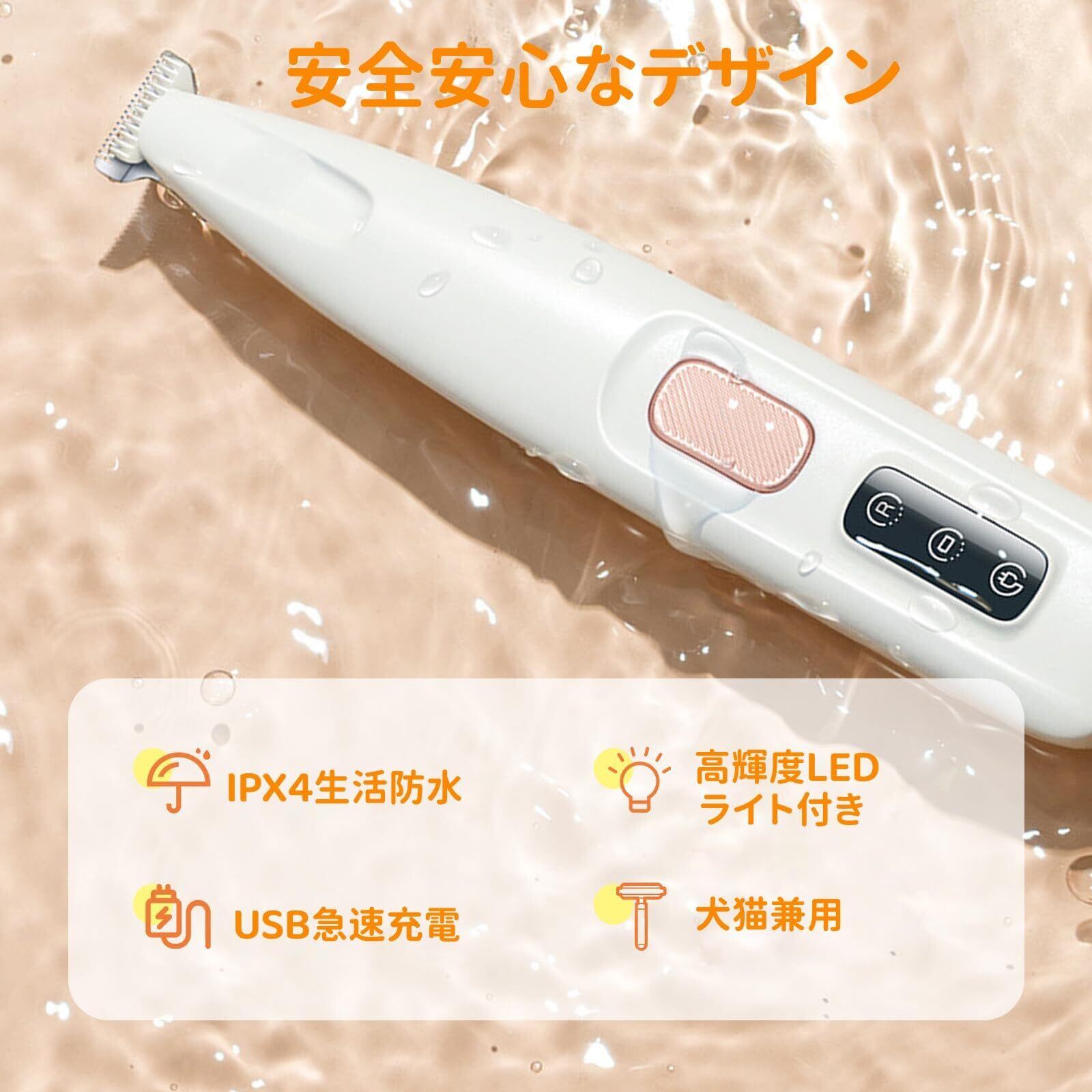 ペット用バリカン Figifidia 犬用バリカン足裏 肉球 猫 LEDライト付き 充電式 コードレス 犬 猫用 耳裏 顔周り お尻周り 低騒音 小型 軽量 日本語取扱説明書付き
