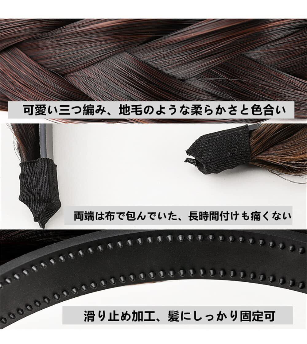 カチューシャ 三つ編み 前髪 髪留め ヘアバンド 髪飾り ヘアアクセサリー 滑り止め 痛くない かわいい (自然黒)