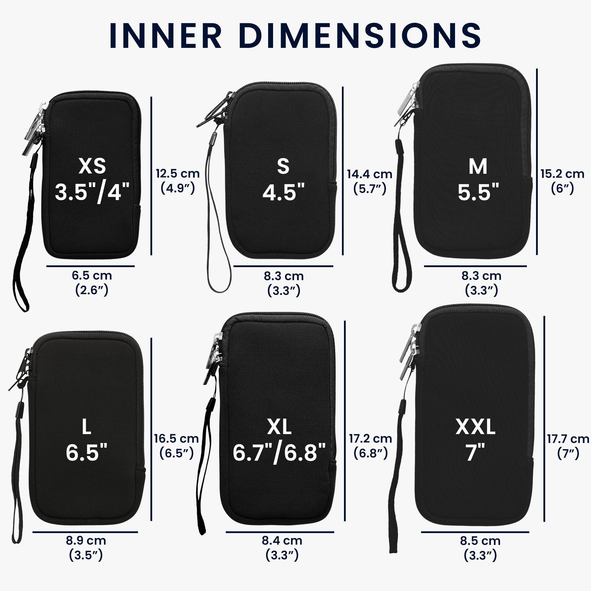 ユニバーサル: この保護ケースの内寸法は15.2 x 8.3 cm でM - 5.5"のスマホに合います。例えばアップル、サムスン、シャープ、Huawei、Asus対応。