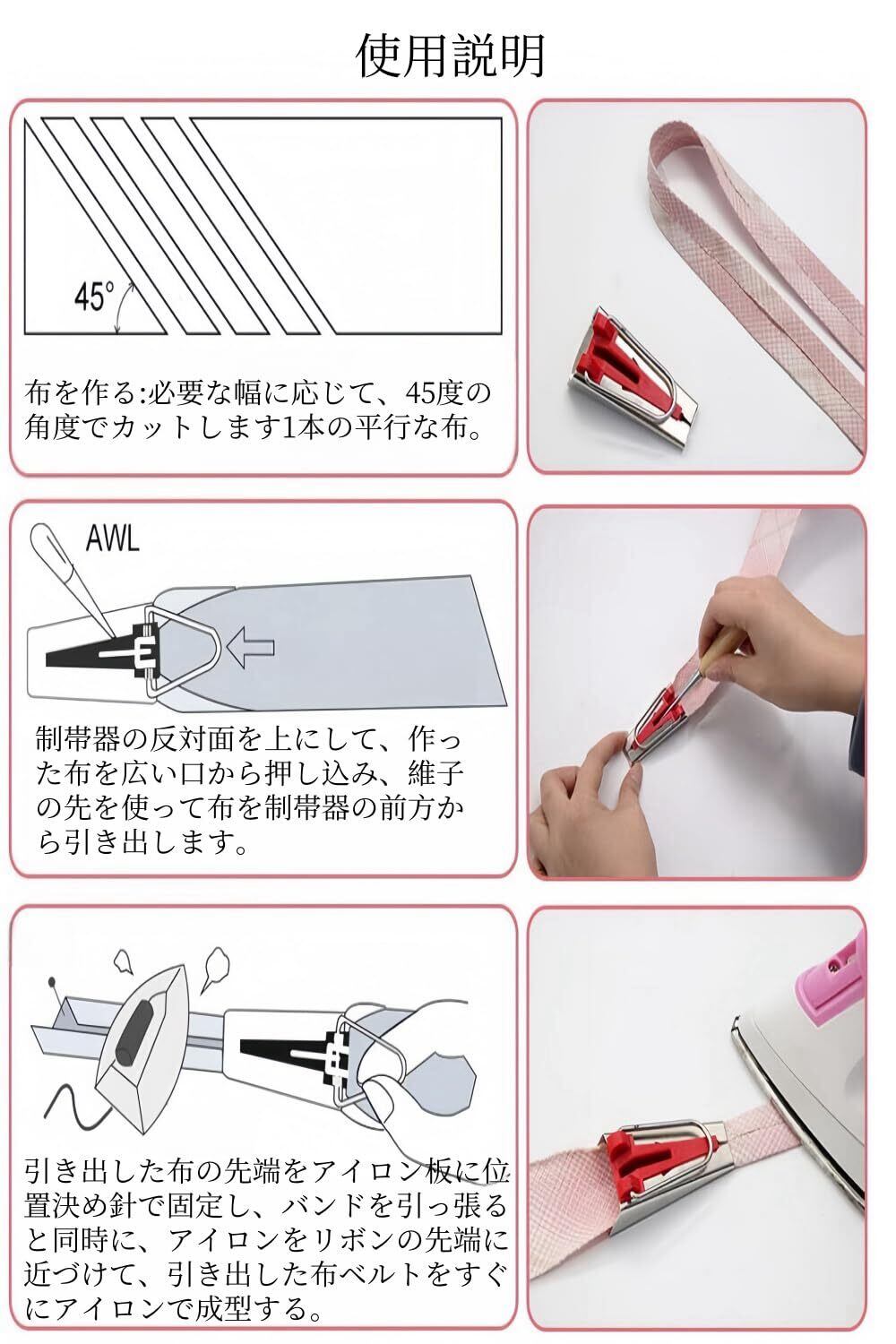 【初心者さんにも適用】使いやすく,初心者にも使用しやすく、初めての方にもバイヤステープ作製が簡単にできます,布地を斜め45°にカットし、テープ状にすることで、適度な伸縮性としなやかさをもったテープとなり, バイアステープを数分で作成できます。