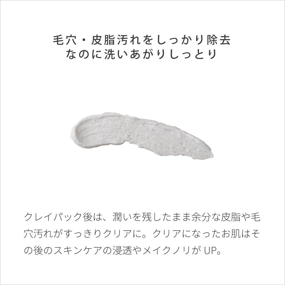 【ポイント1】:『毛穴・皮脂汚れをしっかり除去なのに洗いあがりしっとり』クレイに配合された保湿成分や、クレイ自身のもつミネラル等を手放してお肌に与えることで、かわりに余分な毛穴・皮脂の汚れを吸着してくれます。