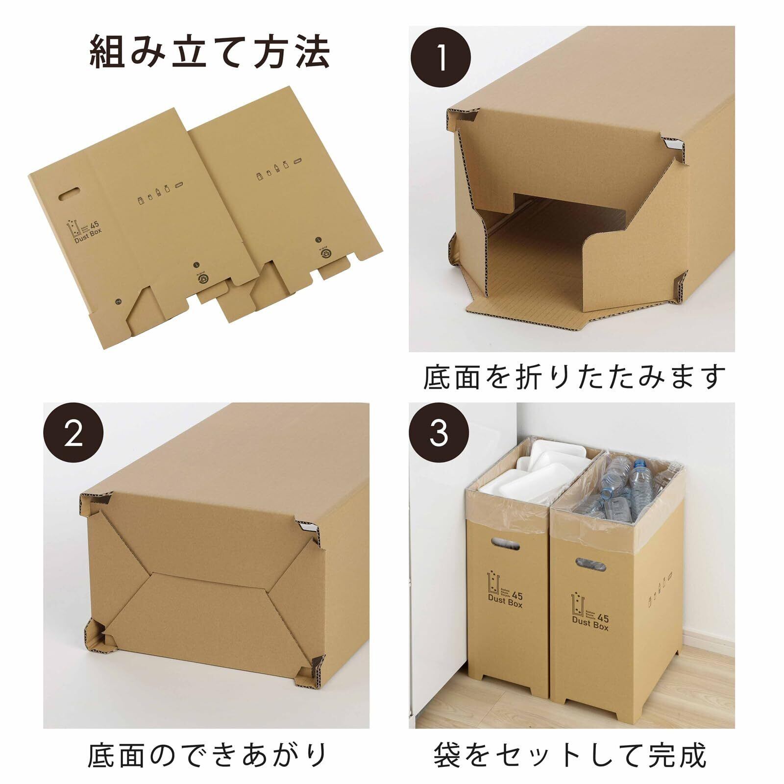 下村企販 リサイクルできるダンボール製ゴミ箱 45L 2個組 【日本製】 隙間に置けるスリム幅 資源ごみの分別に 簡単組み立て 折りたたんで収納 ダストボックス 燕三条 42696 | allstore1