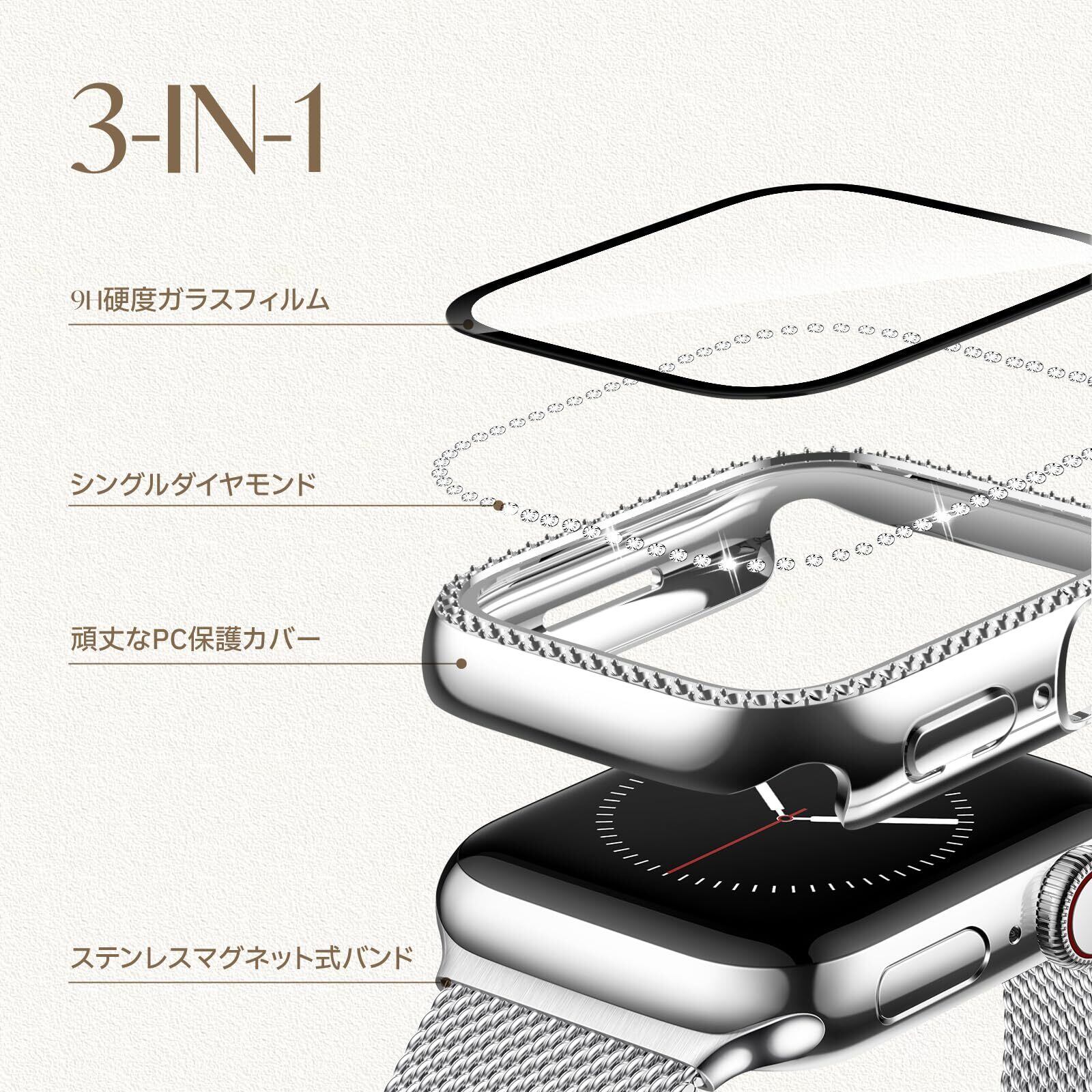 [Straplanet] コンパチブル アップルウォッチ バンド マグネット ステンレス留め金製 Apple watch バンド 磁気 金属 メッシュ 通気 Apple Watch キラキラ カバー付き ダイヤモンド アップルウォッチ ベルトとケース 一体型 セット レディース Series 9 8 7 の45mmに対応 | allstore1