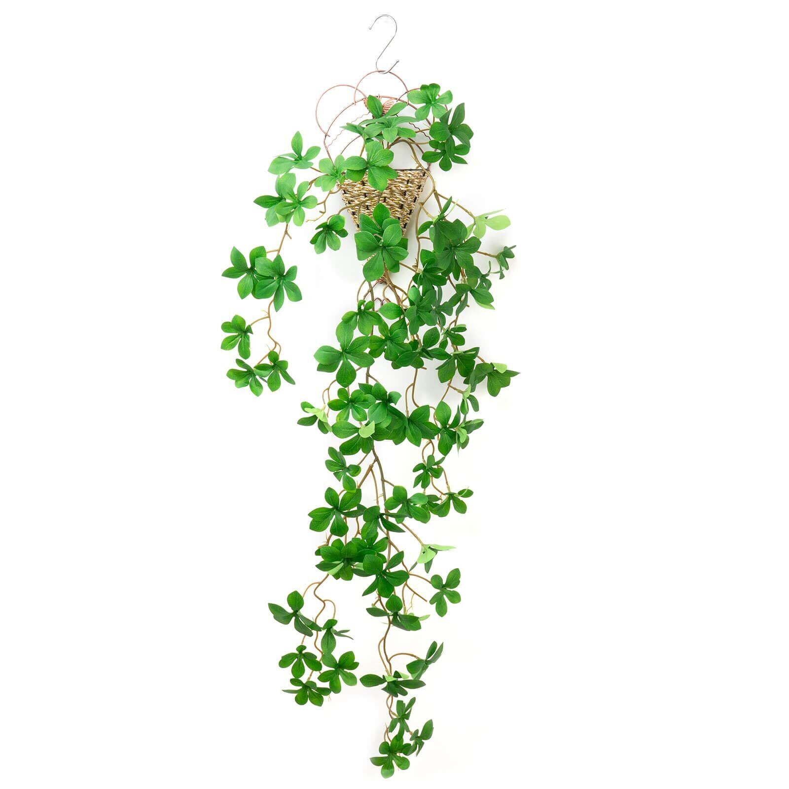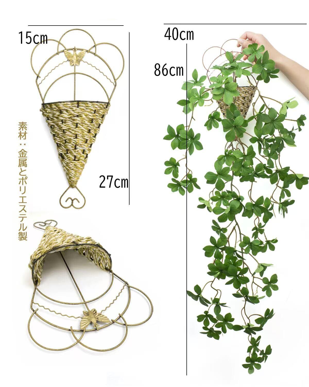 フェイクグリーン 吊り下げ 壁掛け セット【オシャレなバスケット付き】全長約86cm 観葉植物 ドウダンツツジ フェイク 軽量 ギフト 向け