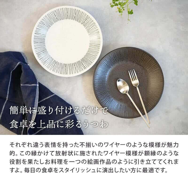 ラフなストライプ模様が、料理を引き立て、モノトーンカラーを組み合わせることで、モダンなコーディネートを楽しめる洋食器です。