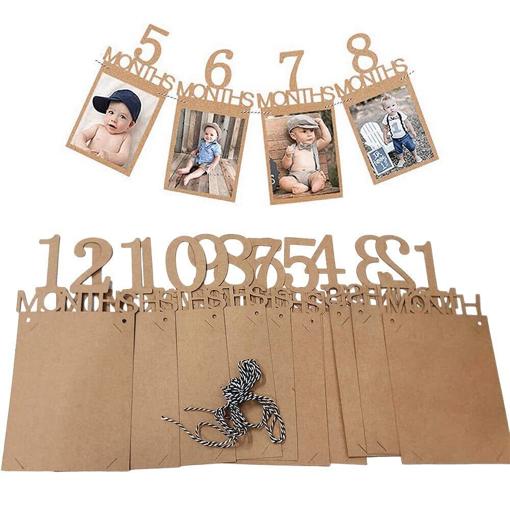誕生日 写真 ガーランド フォトフレーム 飾り付け 1歳 12ヶ月 バースディ パーティー お祝い 装飾 壁掛け 写真フレーム 写真立て 記念日 赤ちゃん 結婚 ひも付き (茶色) | allstore1