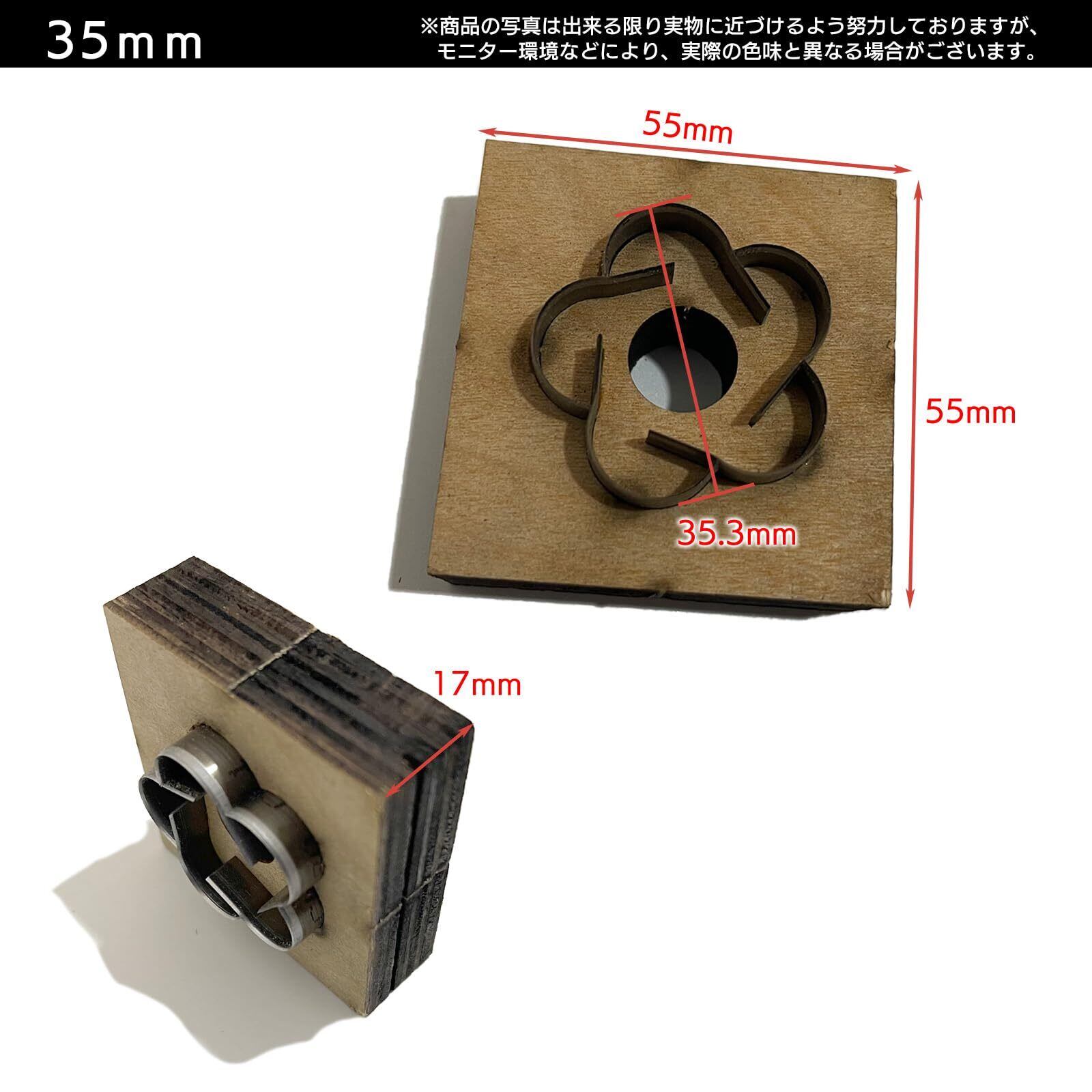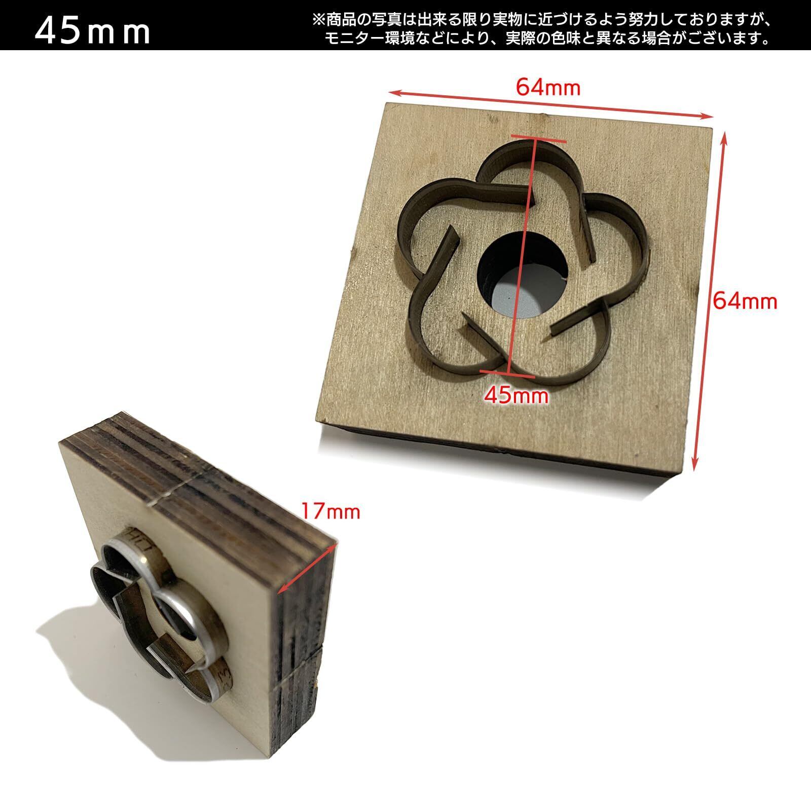 本製品は、革のハギレを有効活用するのにも適しており、型抜きしたパーツを組み合わせることで、独自のデザインを作成することが可能です。刃先が鋭いため、取り扱い時には手を傷つけないよう十分ご注意ください。カットサイズは35mm、45mm、55mmの3種類からお選びいただけます。