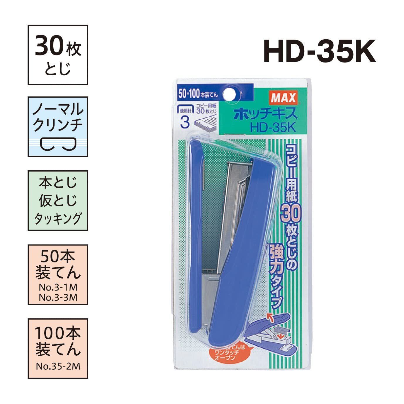 商品名 : マックス ホッチキス 中型 ハンディタイプ ブルー HD-35K HD90009