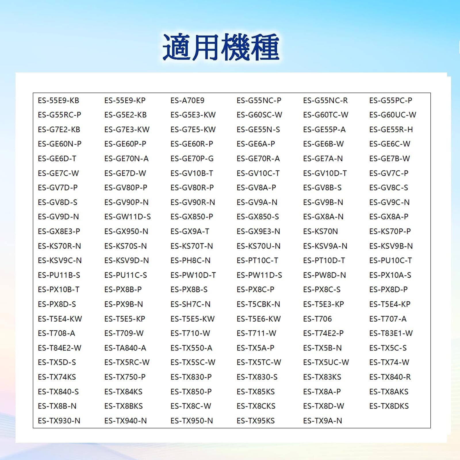 「適用機種」ES-T5E5-KP、ES-T5E5-KW、ES-T5E6-KW、ES-T5E7-KW、ES-T5E8-KW、ES-T5E9-W、ES-T5FBK-N、ES-T6E2-W、ES-T6GBK-N、ES-T706、ES-T707-A、ES-T708-A、ES-T709-W、ES-T710-W、ES-T711-W、ES-T712-T、ES-T713-T、ES-T714-W、ES-T715-W、ES-T74E2-P、ES-T83E1-W