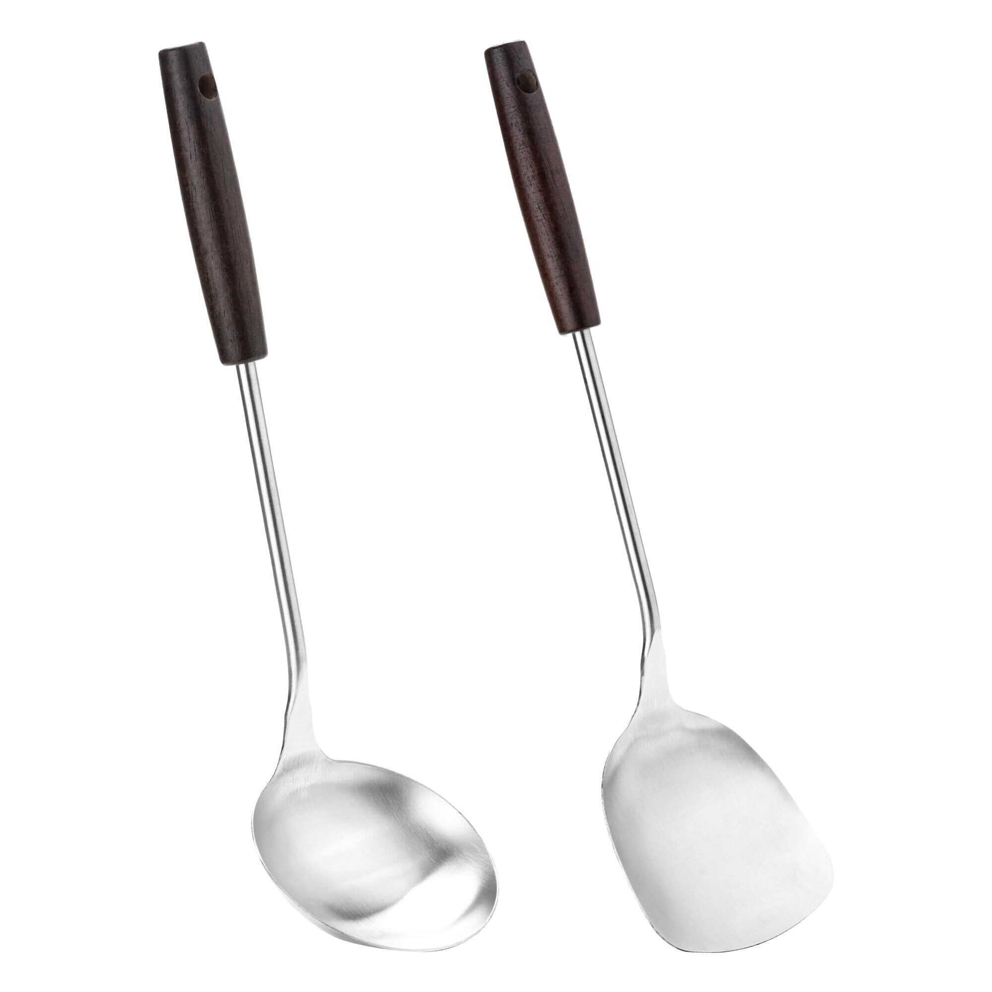 FJNATINH スパチュラ&スプーン - 中華鍋ツール2点セット - 万能中華スプーン&スパチュラ - ステンレス製調理器具 中華鍋アクセサリー