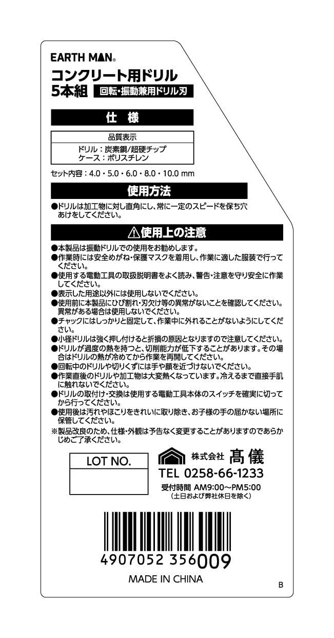 高儀(Takagi) EARTH MAN コンクリート ドリル刃セット 5本組