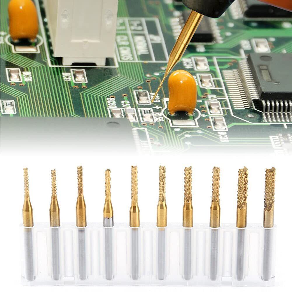 Saipor 10個セット エンドミルセット チタンコーティング セメントカーバイド フライスカッター 1/8インチシャンク 超硬 彫刻ドリルビット PCB 精密加工 CNC ルータービット (0.8-3.175 mm) | allstore1