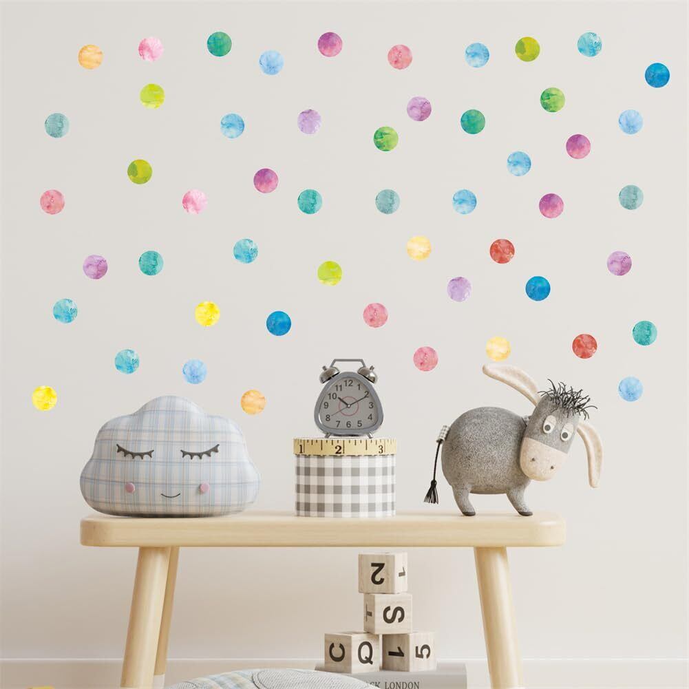HOTIYOK ウォール ステッカー おしゃれ 水彩画 カラー boho ポルカドット 52pcs diy 壁紙 壁 シール 剥がせる 男の子 女の子 寝室 子供 部屋 乳児 ウォール ペーパー アート 幼稚園 保育園 はがせる wall sticker 飾り 御洒落 ウォール デコ | allstore1