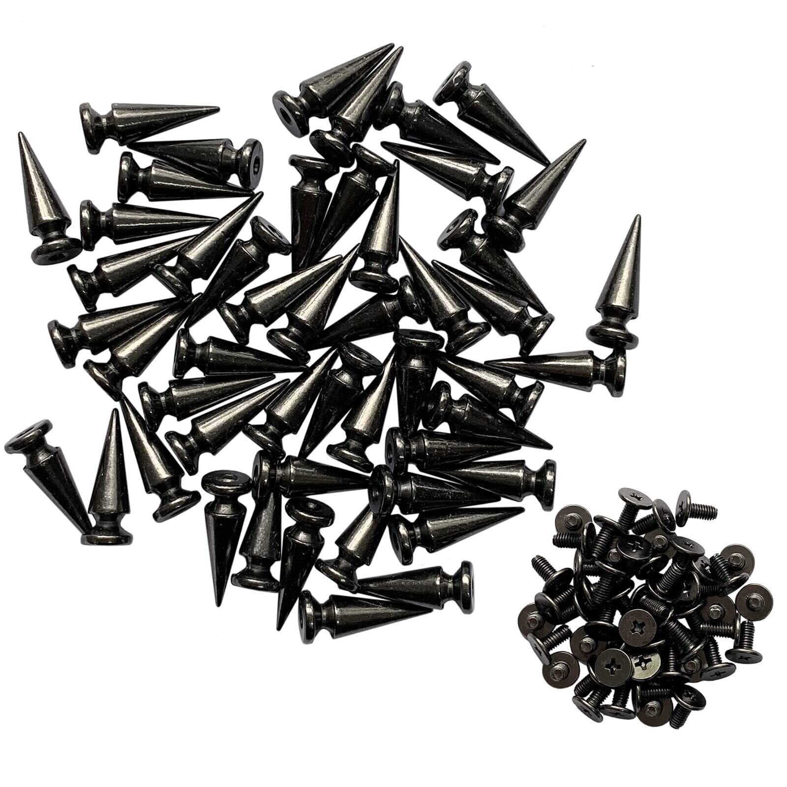 [Gnognauq] 50組 円錐型スタッズ 鋲 パンク風 コーン ネジスタッド DIY バッグ ベルト スニーカー カバン 靴のリメイクに 10×24mm 黒