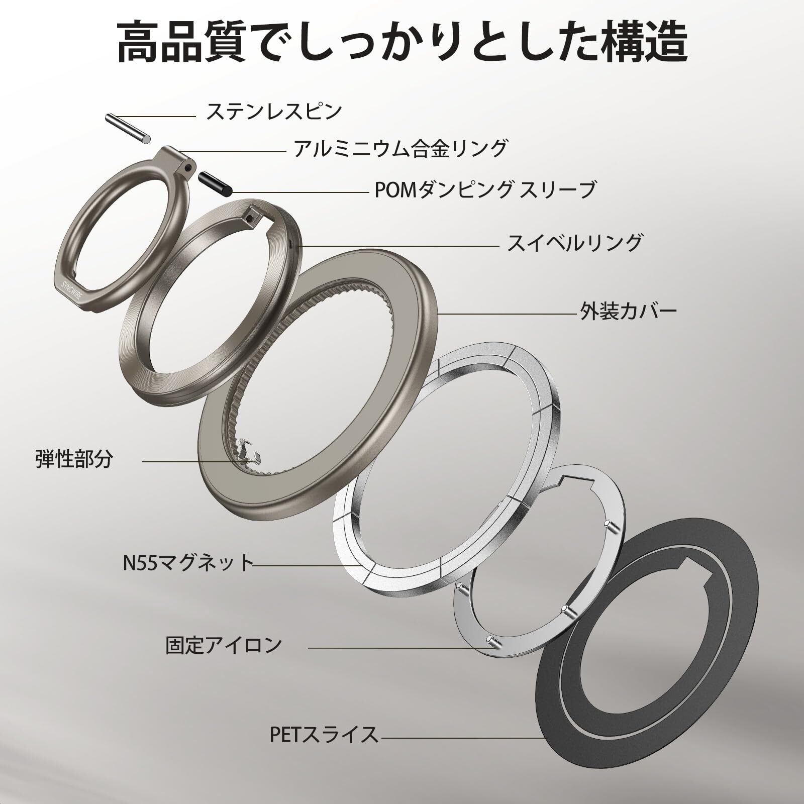 超軽量ながら超强磁力:わずか26.3g、超軽量!たっだ指一本でスマホの落下を防止。業界最強N55磁石で強力な磁吸力を実現し、約1.4KGまでの荷重に耐えます。iPhone16 Pro Maxの重さでも問題なく使用できます。