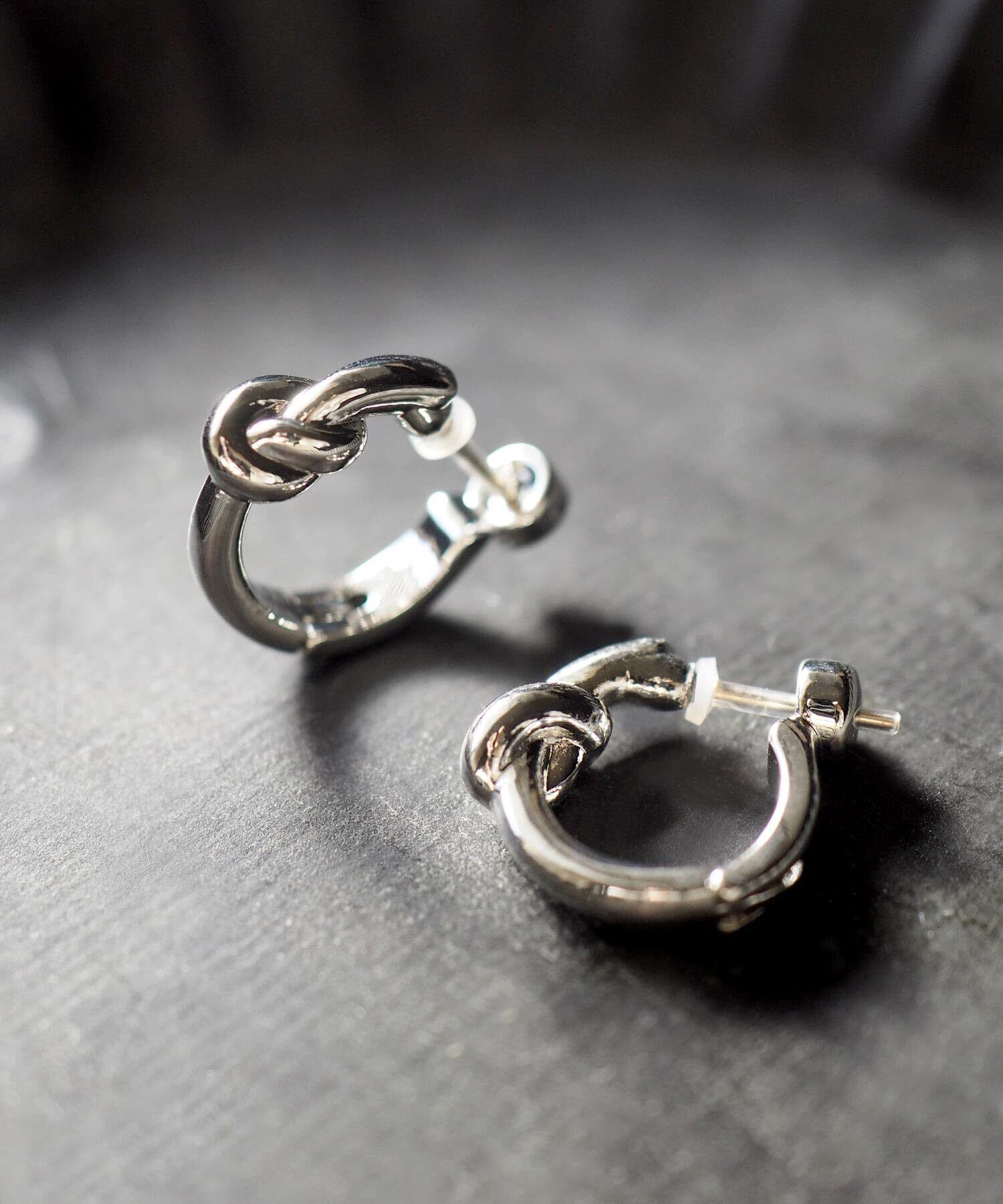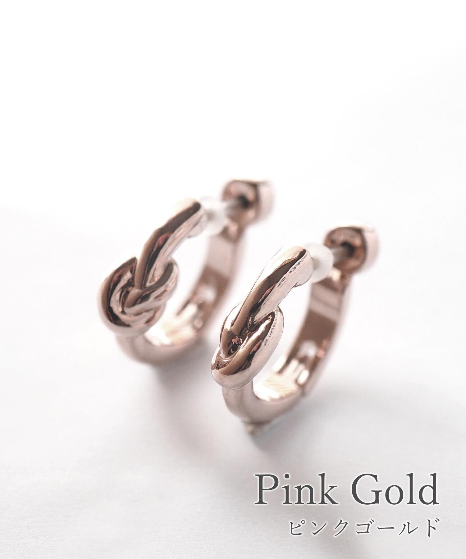 【結び目がアクセントのピアス】リボンを結んだようなデザイン性のあるフープピアスです。 シンプルながらも上品な印象で、シーン問わずお使いいただけます。 コーデにこなれ感をプラスアップ。