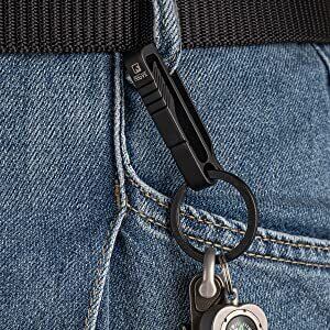 高級感のあるデザインと機能性を兼ね揃えたベルトクリップ型で、ベルトに通して鍵や工具類などを吊り下げます。