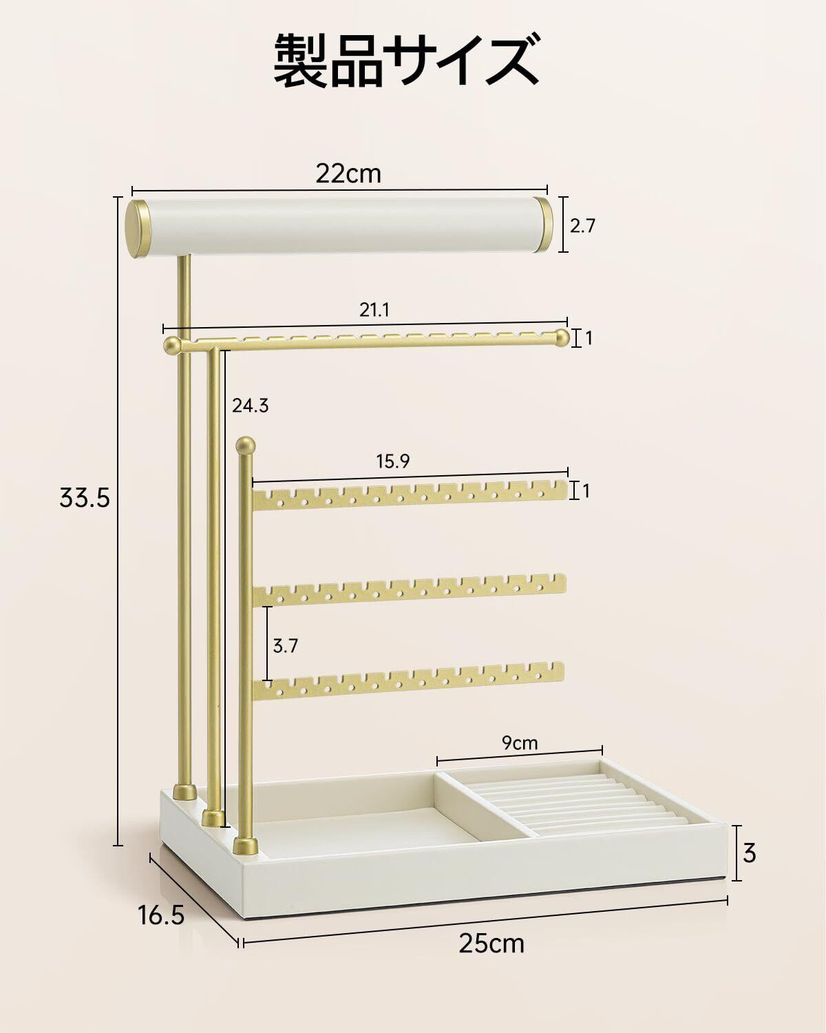 VLANDO アクセサリースタンド ネックレススタンド ピアススタンド レザートレー リング収納 ジュエリー収納 イヤリング プレゼント(アイボリー)