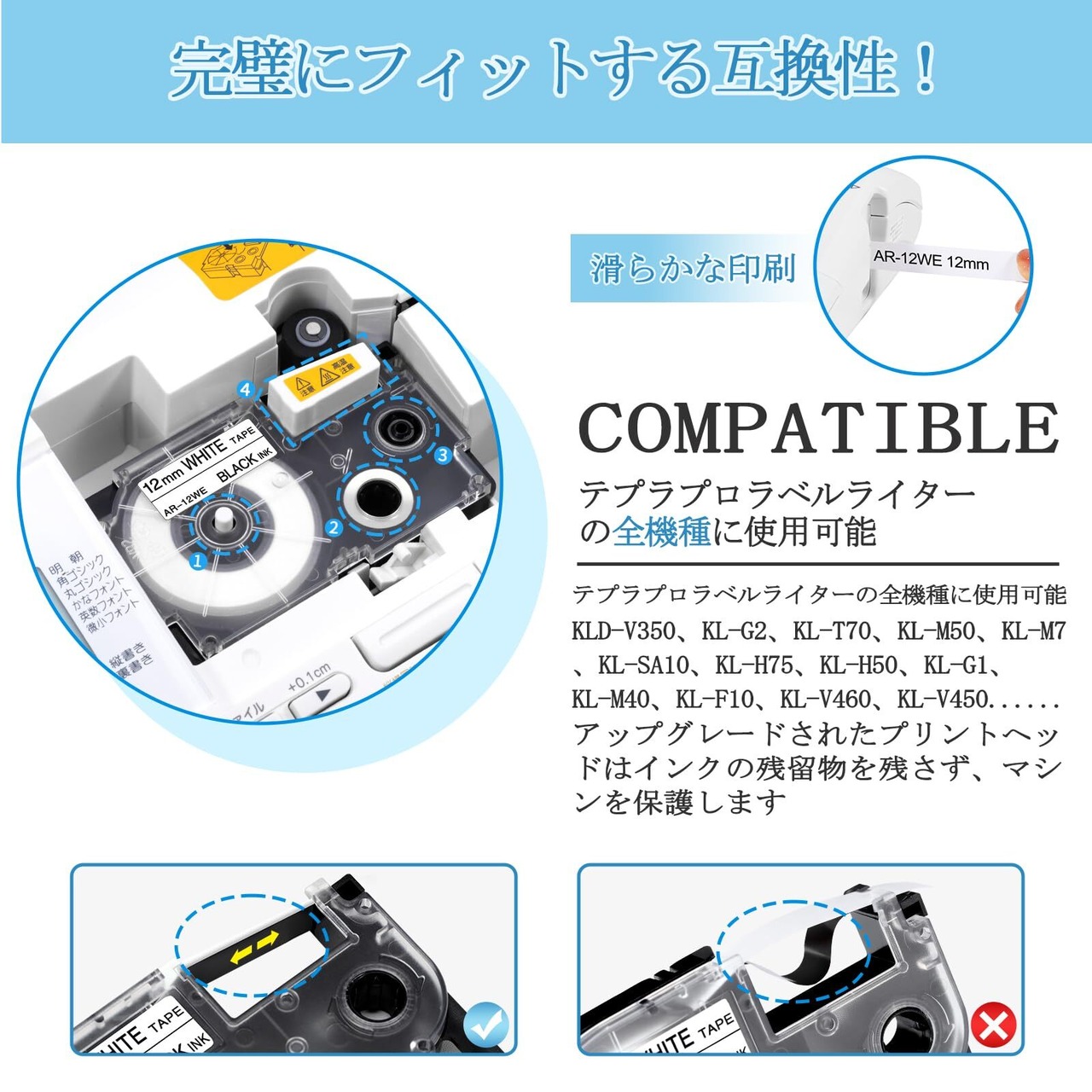 【テープ種類】互換性のあるカシオ ねーむらんど テープ 12mm【含みます】ネームランド 12mm テープ 白地黒文字 1個。【サイズ 】幅12mm、長さ8m