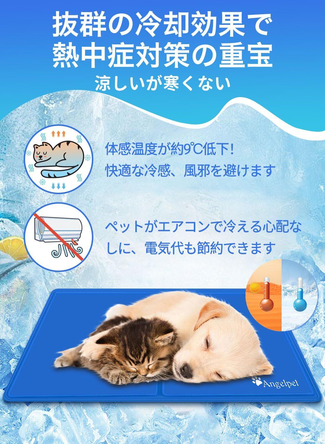 Angelpet ペットひんやりマット犬 猫 夏用 クールマット 冷感ジェルマット 暑さ熱中症対策 洗える ペット人間兼用冷却シート 多用途 猫 小中大型犬対応 (S(50*40cm), ブルー)