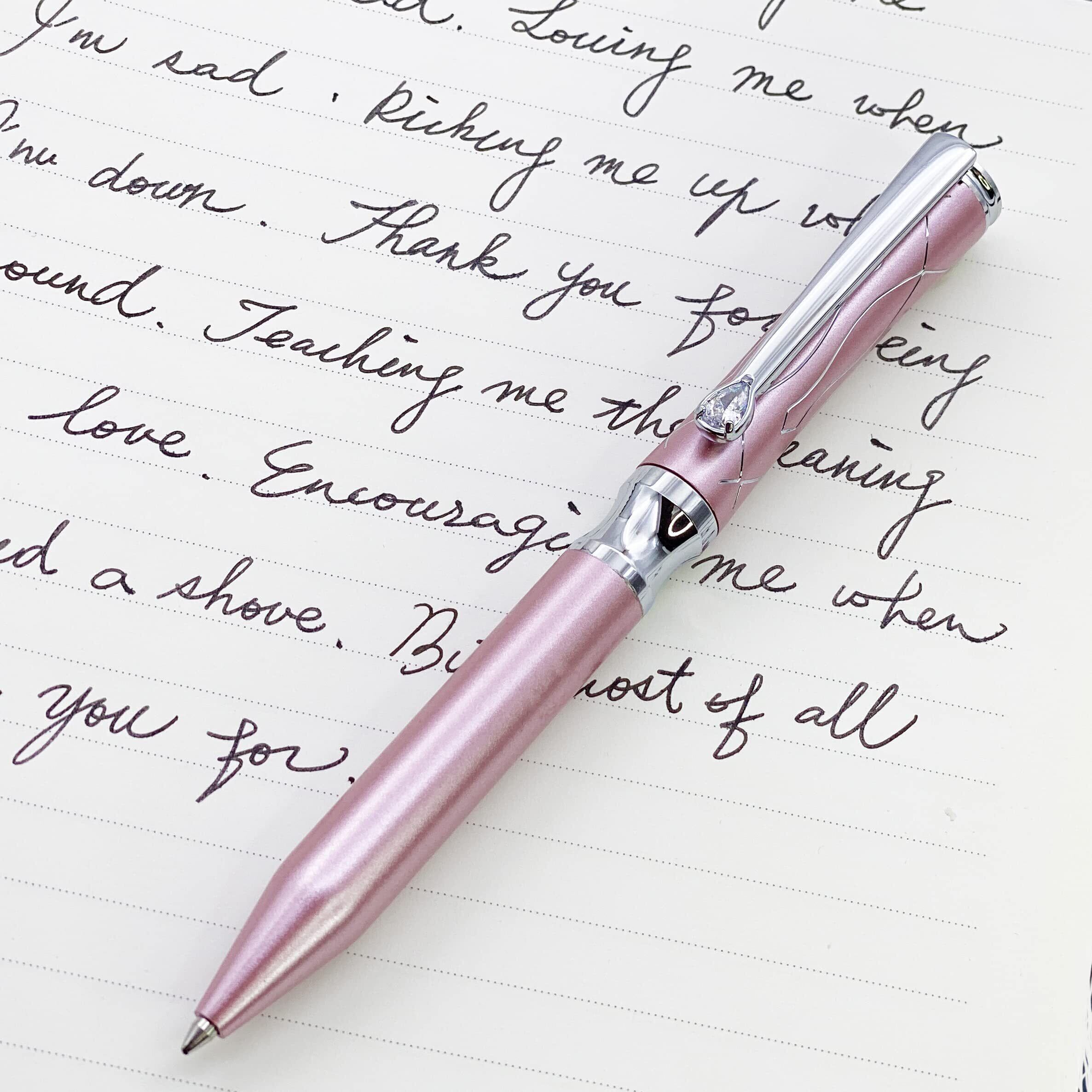 LACHIEVA LUX 人氣 高級筆記具 文房具 スイス製クリスタルクリップ付き、高級金属ボールペンギフトセット(ドイツ製インク、黒と青それぞれ一本付き)- ピンク