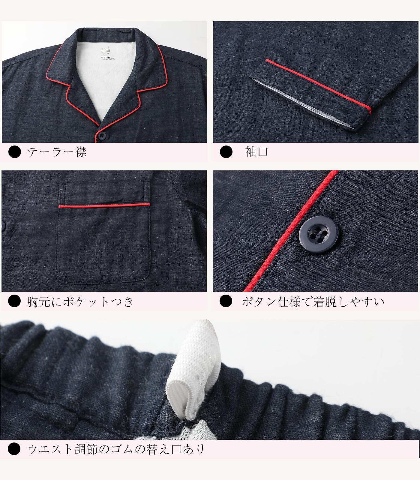 [Bellislove] パジャマ メンズ 長袖 綿100 ルームウェア 二重ガーゼ 前開き 上下セット ゆったり 春 夏 秋 吸汗 通気 肌に優しい 柔らか 薄手のシャツタイプ 入院着 部屋着 寝間着 | allstore1