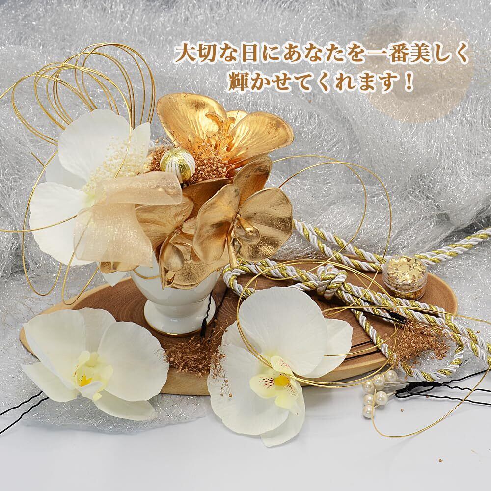 [ANJOU] 胡蝶蘭 髪飾り 成人式 髪飾り 和風 結婚式 白 和装ヘアアクセサリー 浴衣 Uピン式 つまみ細工 振袖向け 卒業式 着物 白無垢 花嫁 七五三 ドライフラワー プリザーブドフラワー