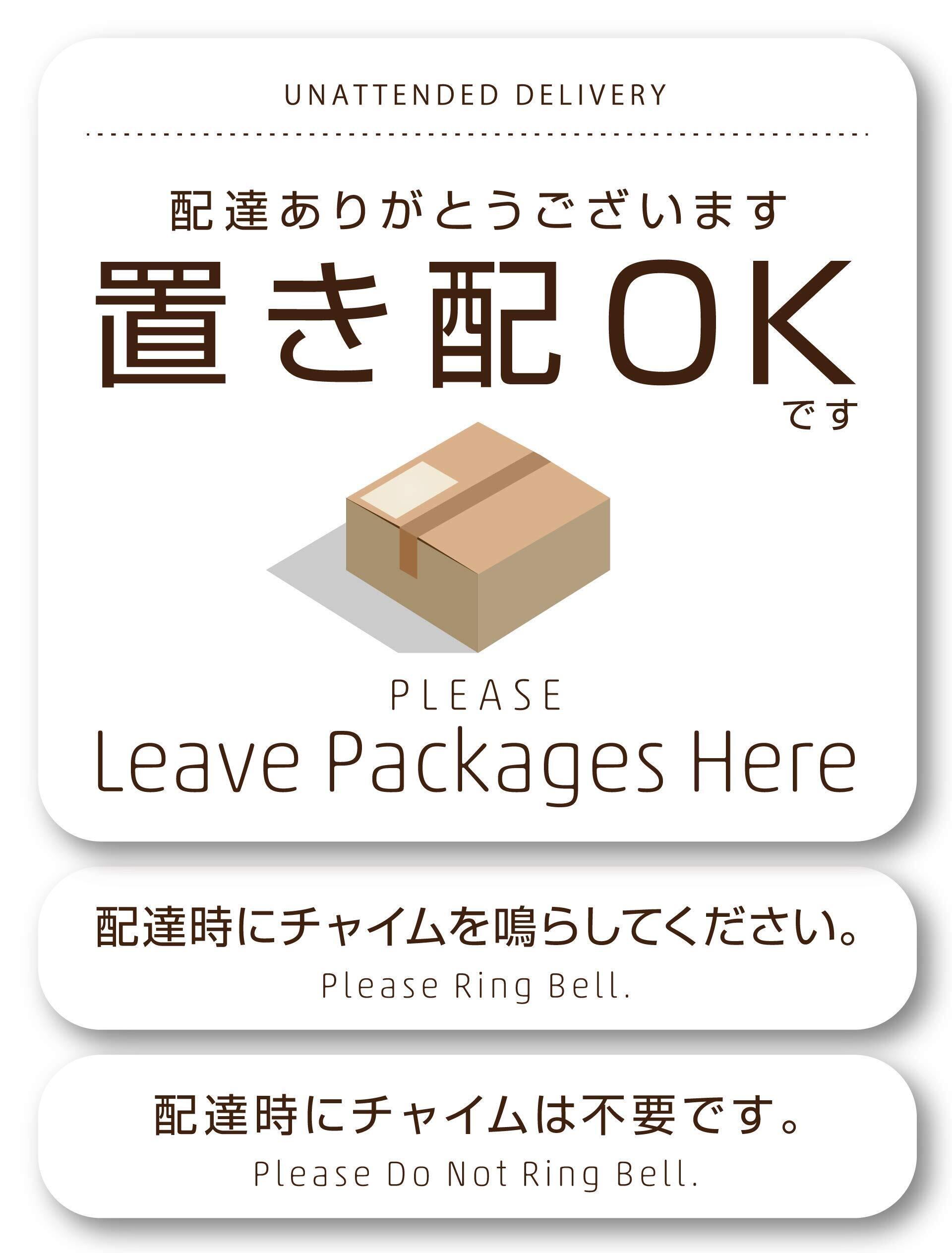 Isaac Trading 置き配OK ステッカー チャイム鳴らして(鳴らさないで)ステッカー付き 耐水 耐候 シール 宅配ボックス 宅配便 宅急便 郵便 配達物 荷物 不在 留守 置配 屋外 玄関 (70×64mm)(マットホワイト) | allstore1