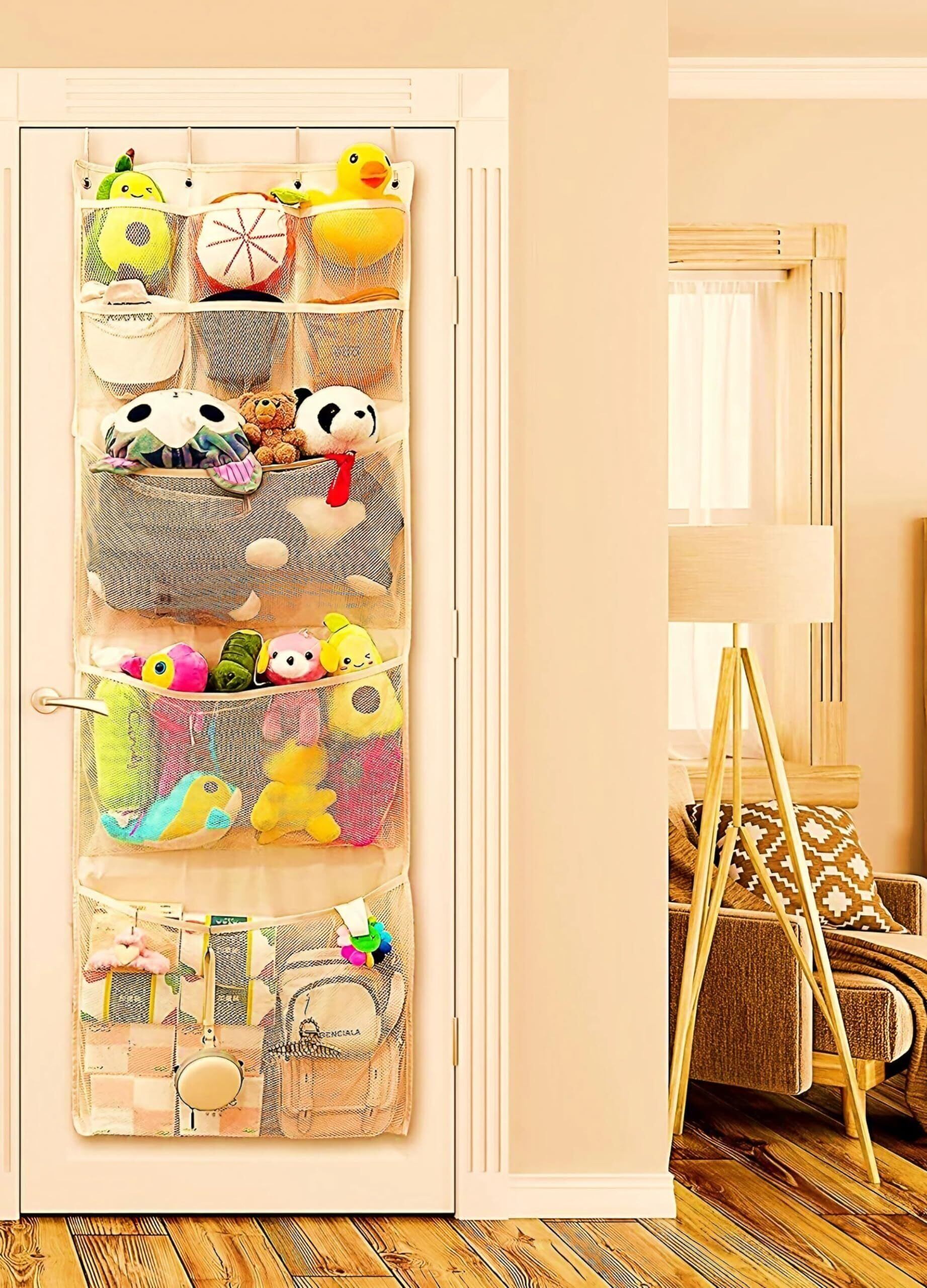 リタ商会 縫い包み 収納 ウォールポケット ウォールハンガー ぬいぐるみ ドア掛け 吊り下げ収納 壁掛け収納ポケット省スペース おもちゃ 整理整頓 多機能収納 (4段・ベージュ) | allstore1