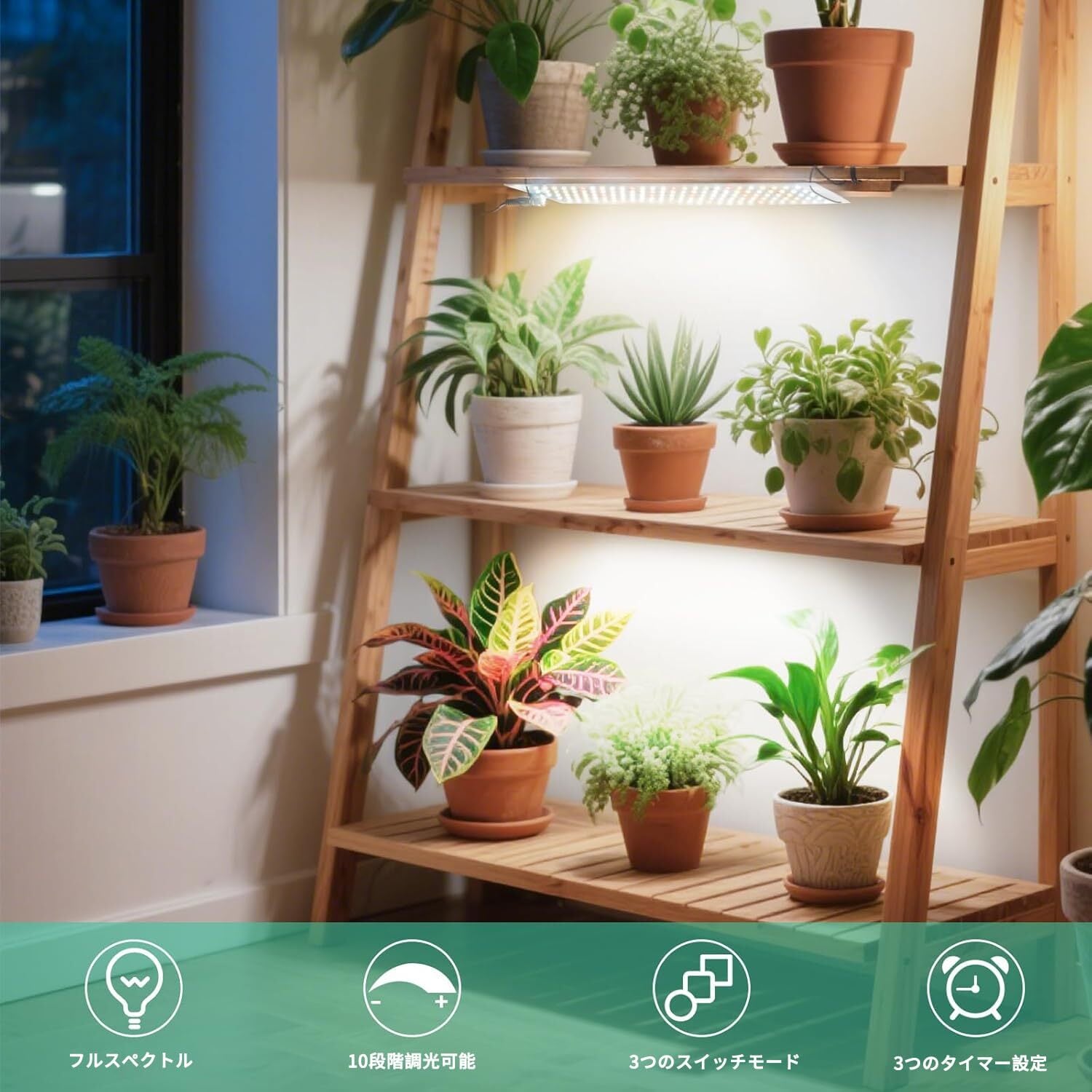 【調光可能】この成長光には調整可能な明るさがあり、10レベルから100%の10レベルの調光オプションを提供します。さまざまな植物の照明要件を満たすために、植物が成長する理想的な照明環境の明るさを簡単に調整することができます。