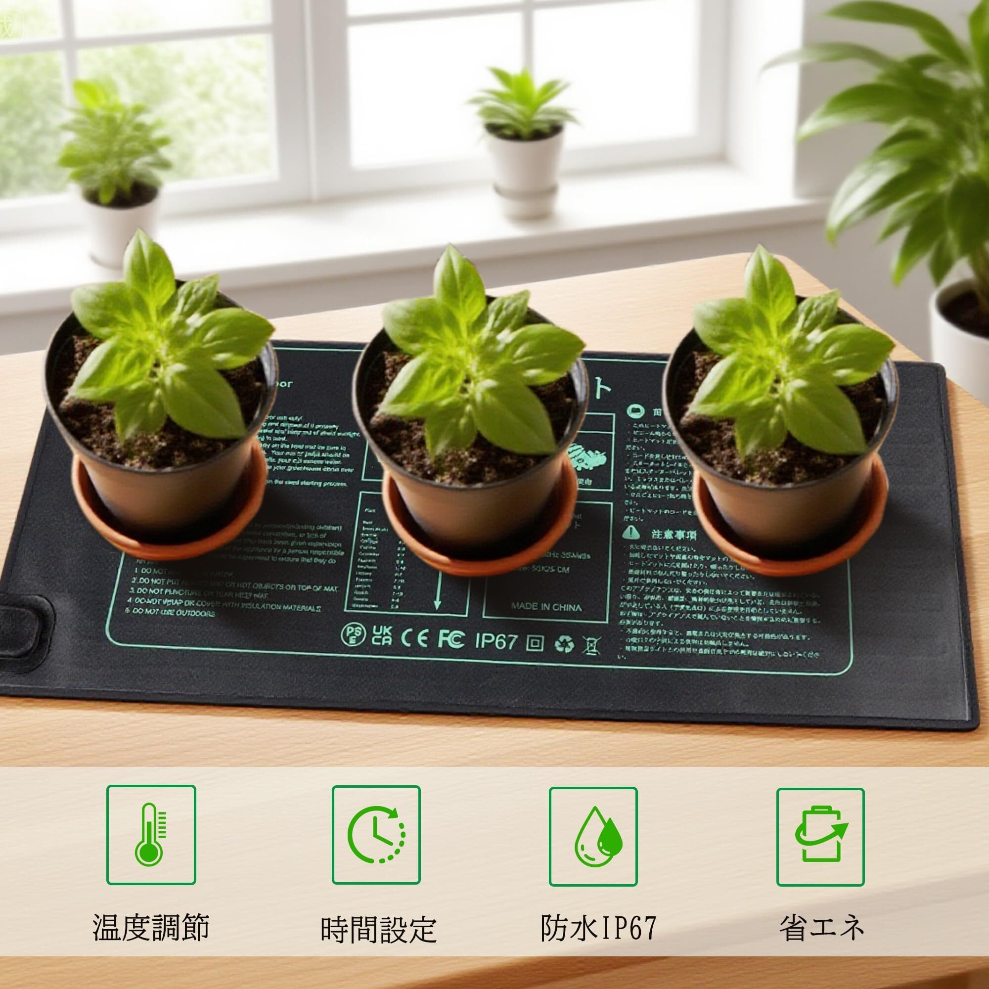 Hyindoor 育苗マット 植物ヒートマット サーモスタット付き タイミング機能 温度制御可能 園芸ヒーター 苗付けヒーターマット 育苗器