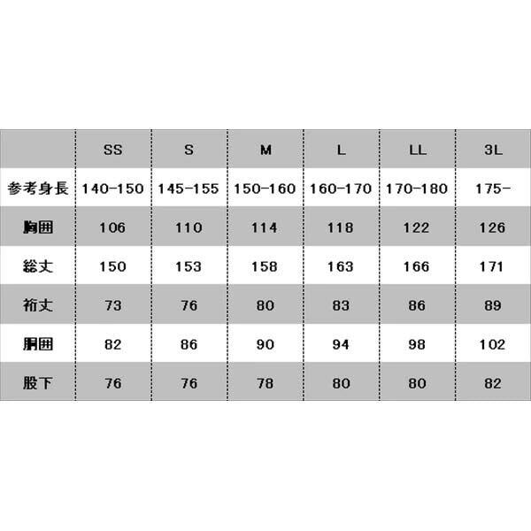 【適用身長】SS:145~155cm/S:155~165cm/M:160~170cm/L:170~180cm/LL:175~185cm/3L:175~185cm/4L:180~190cm/6L:180~190cm