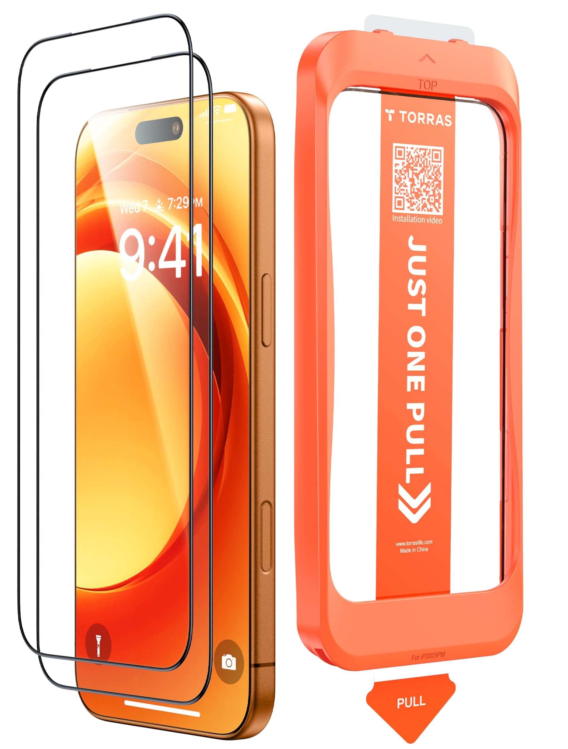 【画期的な「ワンプル(Just One Pull)ガイド枠」でり付け・プロ級の仕上がり】TORRASの「ワンプル(Just One Pull)ガイド枠」で、誰でも簡単に完璧な貼り付けを実現。スマホに枠をセットし、ガイドに従って位置合わせをするだけで、0気泡・0ズレ。さらに、進化した静電気除塵システムが屋内外のほこりやゴミを自動的に吸着し、貼り付け後も美しい仕上がりをキープ。「貼り付け失敗による交換コスト」「ショップ代行費用」を削減。(For iPhone 17 Pro ガラスフィルム)