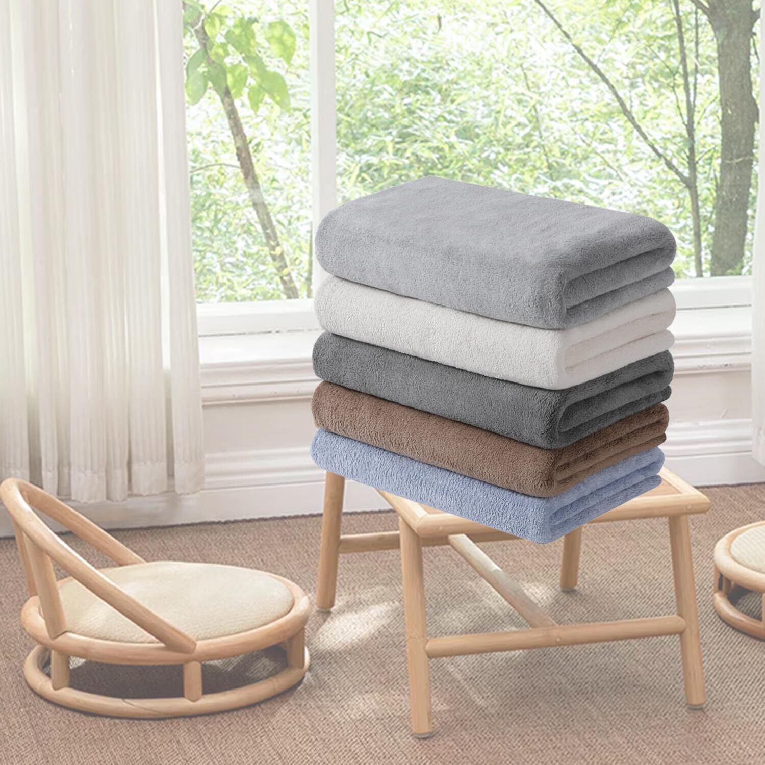 Oseamaid バスタオル 大判 5 枚セット マイクロファイバー タオル 吸水速乾抗菌防臭 (グレー ベージュ ダークグレー コーヒー色 ブルー)
