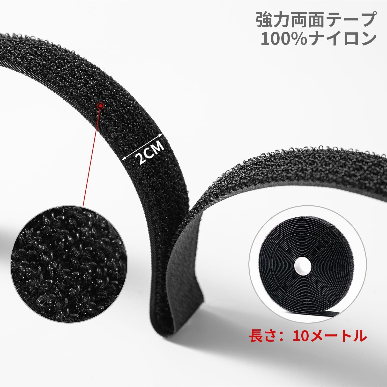 Trilancer 10m x 2cm 再利用可能なケーブル結束バンド、調整できる面ファスナーバンド+バックル50個付き、自由にカット、ワイヤ管理、配線の整理、ケーブルバンド、黒色