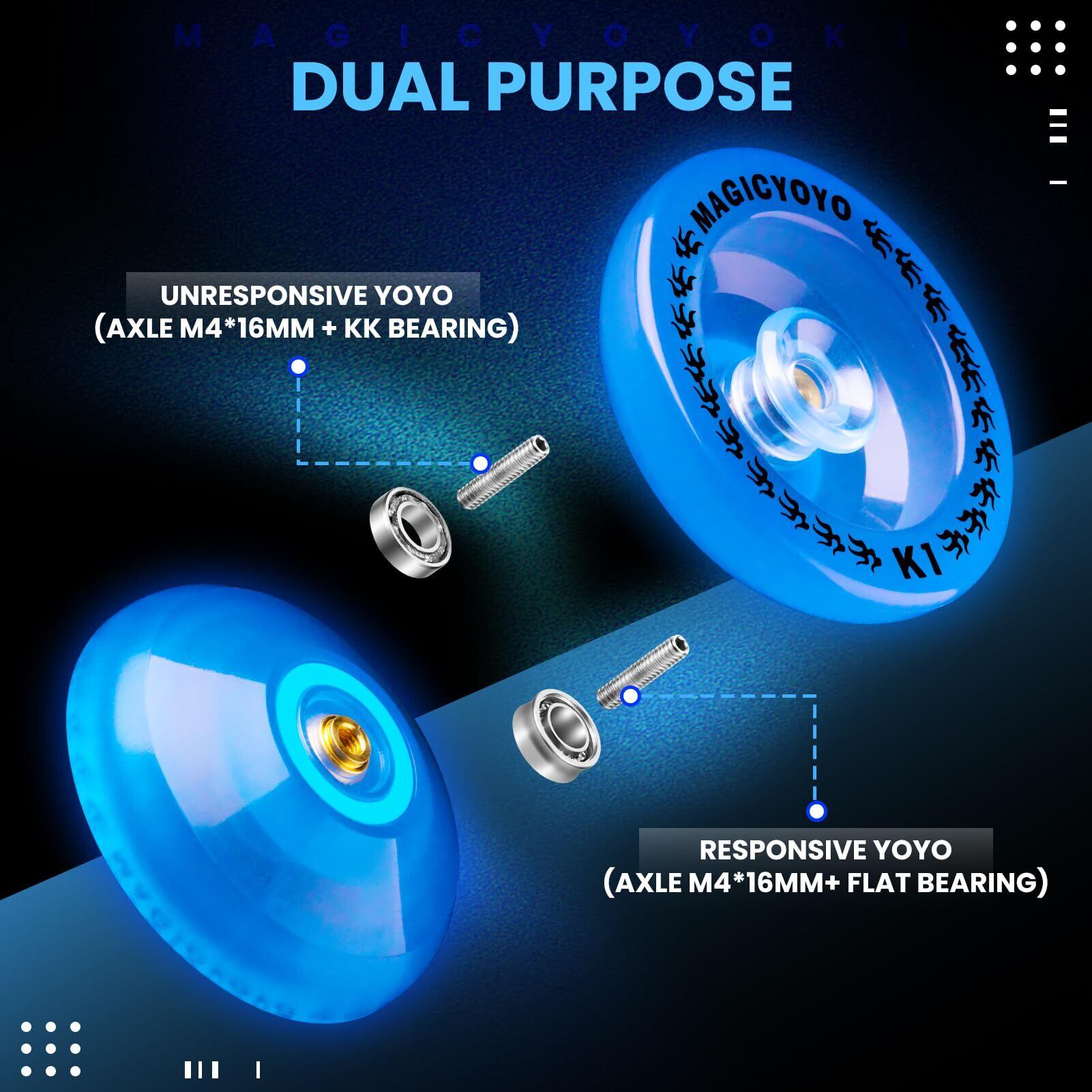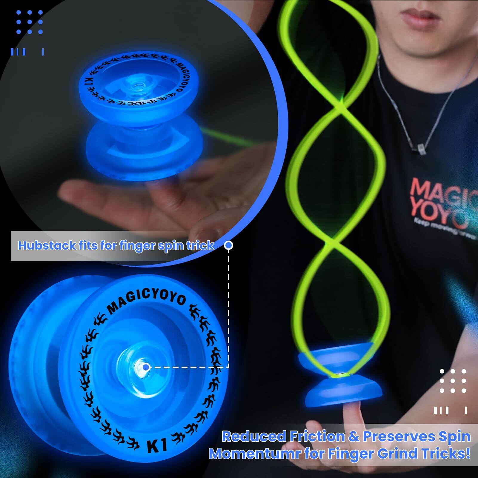 MAGICYOYO レスポンシブ ヨーヨーK1 8~12歳以上 ヨーヨー収納バッグ付き + ヨーヨーストリング12本 ヨーヨーグローブ 反応しないベアリングキット アドバンスドヨートリック用 (ダークブルーで光る) | allstore1