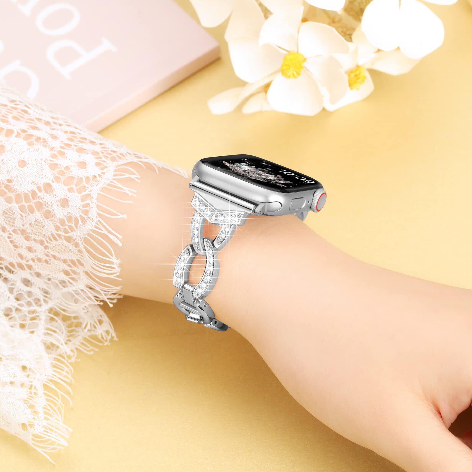[Daturus] 互換性があります Apple Watch バンド ダイヤモンドラインストーン ステンレス アップルウォッチ ベルト Apple Watch 10/9/8/7/6/SE/5/4/3/2/1に対応 アップルウォッチバンド(銀、42mm(Series 10) /41mm/40mm/38mm) | allstore1