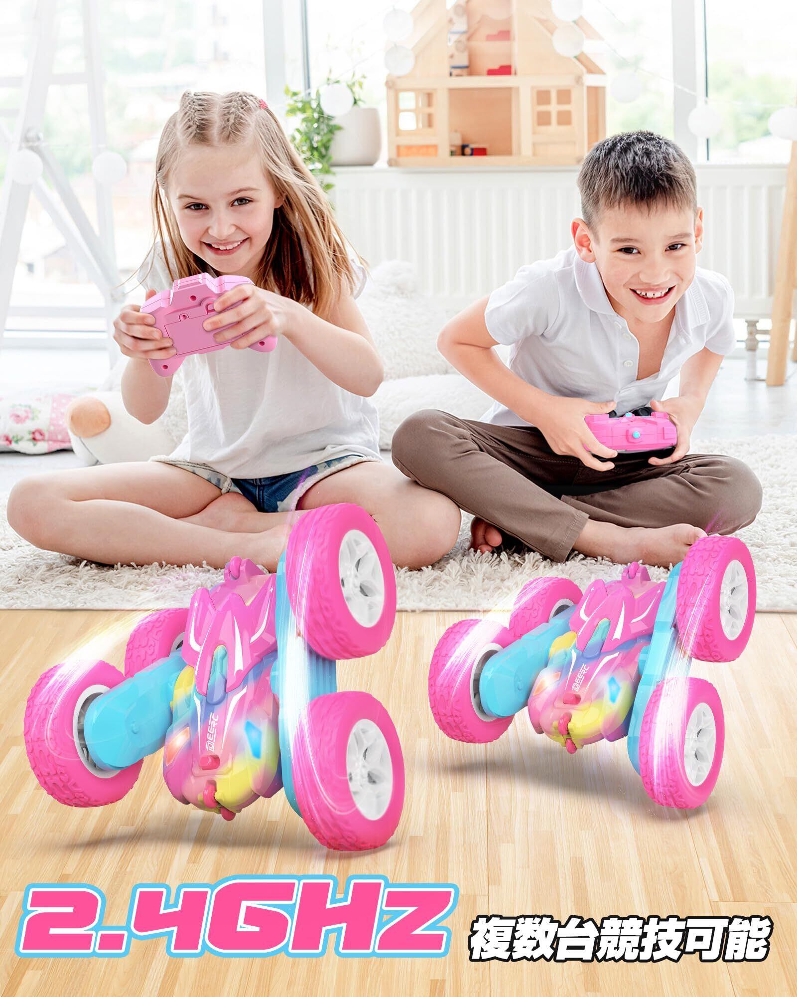 DEERC ラジコン ラジコンカー 子供向け オフロード スタントカー 四輪駆動 両面走行 360度回転 バッテリー2個付き 40分間走れ RCカー 車おもちゃ リモコンカー 2.4Ghz無線操作 子供 男の子 小学生 中学生 誕生日 プレゼント 贈り物 ギフト 入園 日本国内認証済み 日本語取扱説明書 DE87 ピンク
