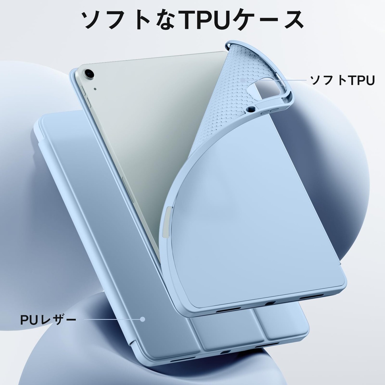 【全面保護】この対応iPad air ケースはTPU素材を採用し、ソフトな手触り、軽量、超薄型だけでなく、高い弾力性により対応iPad落下の衝撃も吸収し、衝撃性の高い素材で対応iPad本体を保護します。マイクロファイバー製のインナーカバーは、日常使用時の摩擦による傷からスクリーンを保護します。