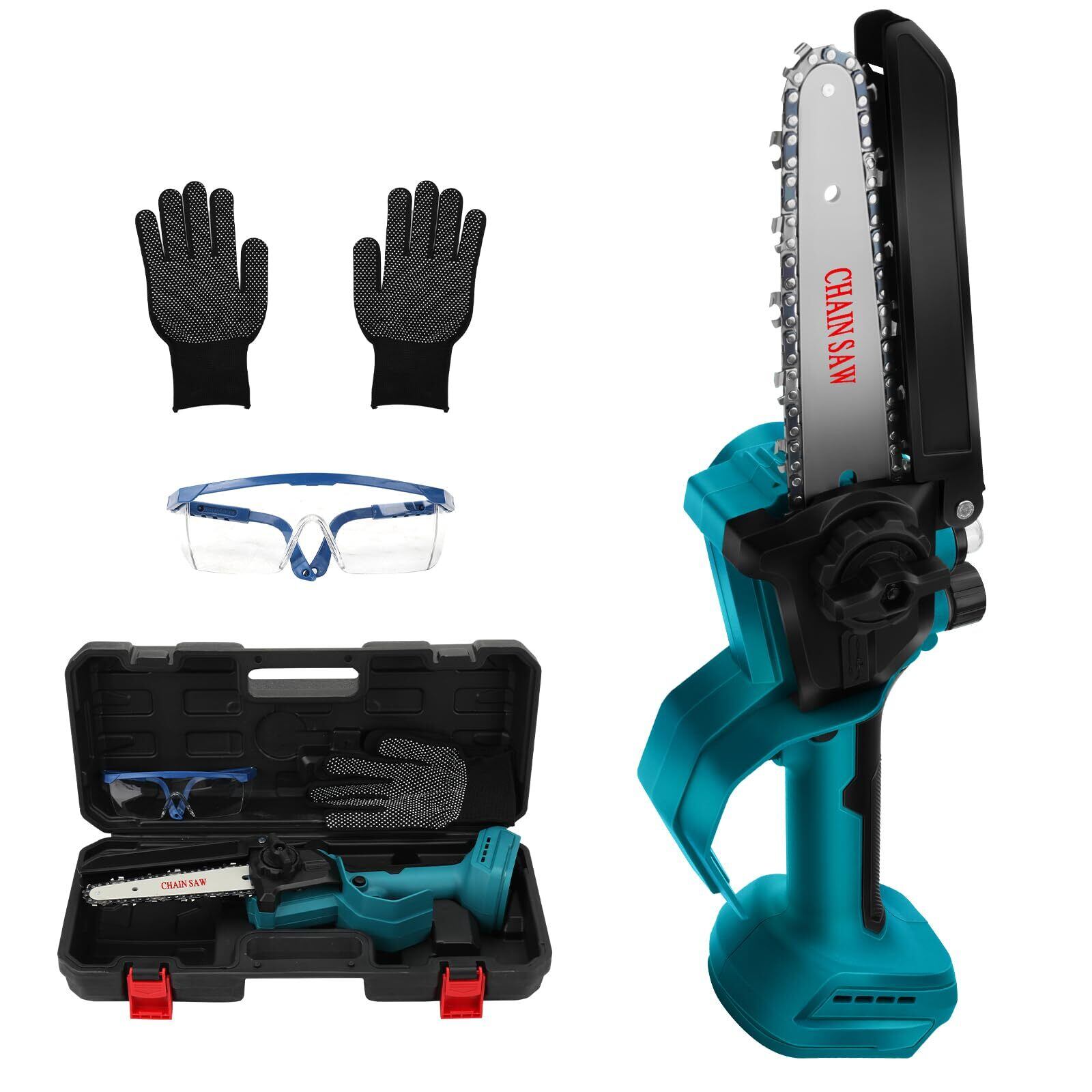SYAYOUHIN ブラシレス チェーンソー マキタ18V交換 6 インチ 4500/分 チェーン速度4m/s リチウムイオンチェーンソー 充電式 無刷锂电ショーグン锯 切断径15cm 木工道具 アウトドア 庭仕事道具 木材切り 伐採工具 内蔵 ゴーグル+手袋付き 高枝伐採 庭木の剪定 [並行輸入品] | allstore1