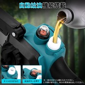 このチェーンソーは、チェーンの速度が4m/sと高いため、硬い木材にも対応可能です。最大切断径は15cmと大きく、様々な伐採作業に対応します。リチウムイオンバッテリーを使用しているため、長時間の作業が可能で、充電も簡単です。